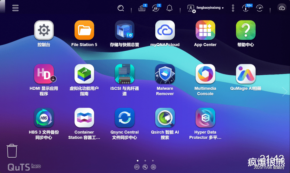 QuTS Hero系统操作界面和我们常用的QuTS 5.2系统整体界面布局和操作逻辑保持一致,对于熟悉 QTS 的老用户而言,用起来很简单,上手特别容易。