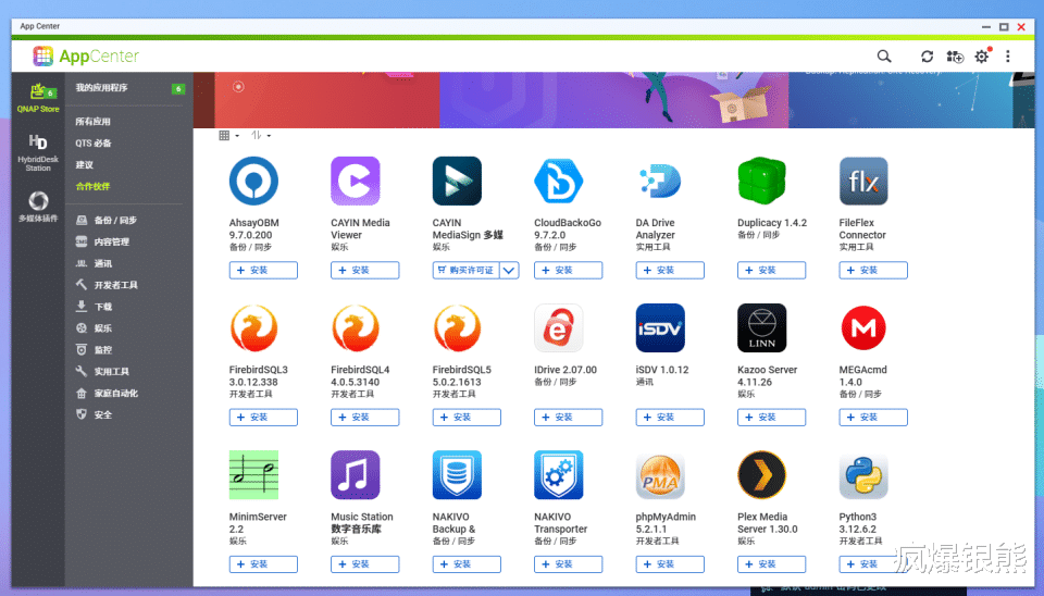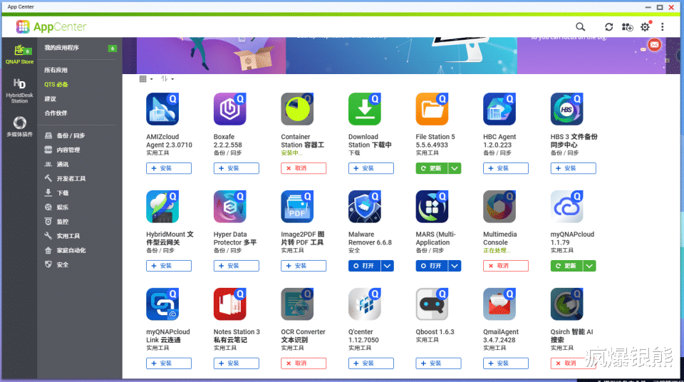 在应用生态上,威联通数十年的深耕也是其他品牌不能比拟的。应用商店中除了多款好用有用的自研应用外(例如HybridMount 文件型云网关、HBS 3 文件备份同步中心、Qsirch 智能 AI 搜索、Qfiling 文件归档、Qsync Central 文件同步中心等),还拥有近50款可玩性极高的应用。