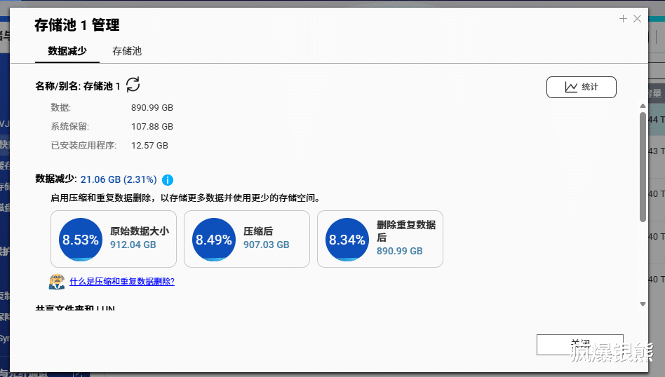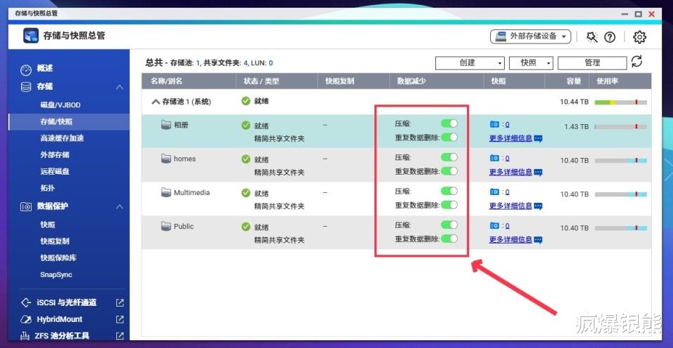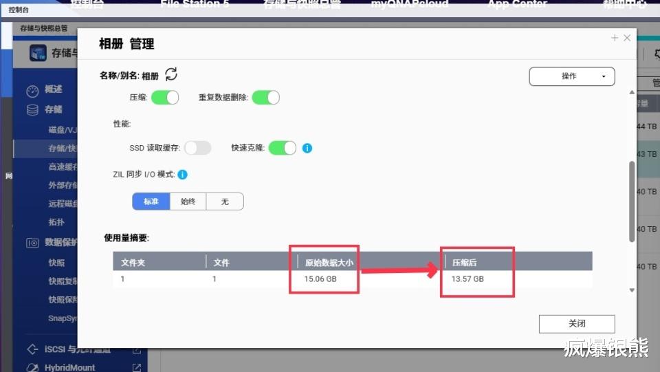 以笔者为例,作为自媒体玩家,笔者手里的资料非常多,占用存储空间也不少。在QuTS Hero系统下我们传输文件时,系统会在写入过程中对一些可压缩数据进行压缩,在减少磁盘占用空间的同时还优化了硬盘的利用率,一定程度也提升了数据存取的效率。