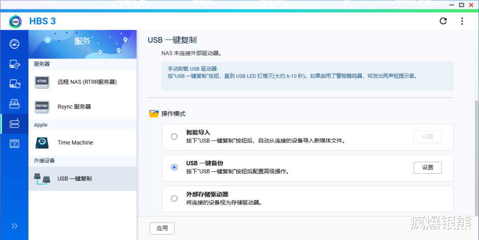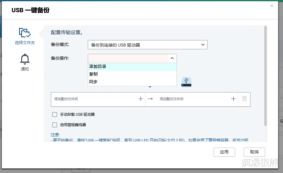 第二种备份模式更为专业,其除了可指定存储目录外,也支持选择USB设备中的备份文件夹,同时除了可以把USB外接设备上的内容备份到NAS上外,我们也可以选择把NAS上重要的内容备份到USB外接设备上。USB一键复制的响应级别非常高,一旦开始就不会被打断,主打一个高效且方便。