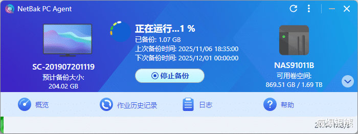 整个备份过程也超简单,在清单界面下载NetBak PC Agent客户端,安装到PC电脑上,然后连接NAS并登录。