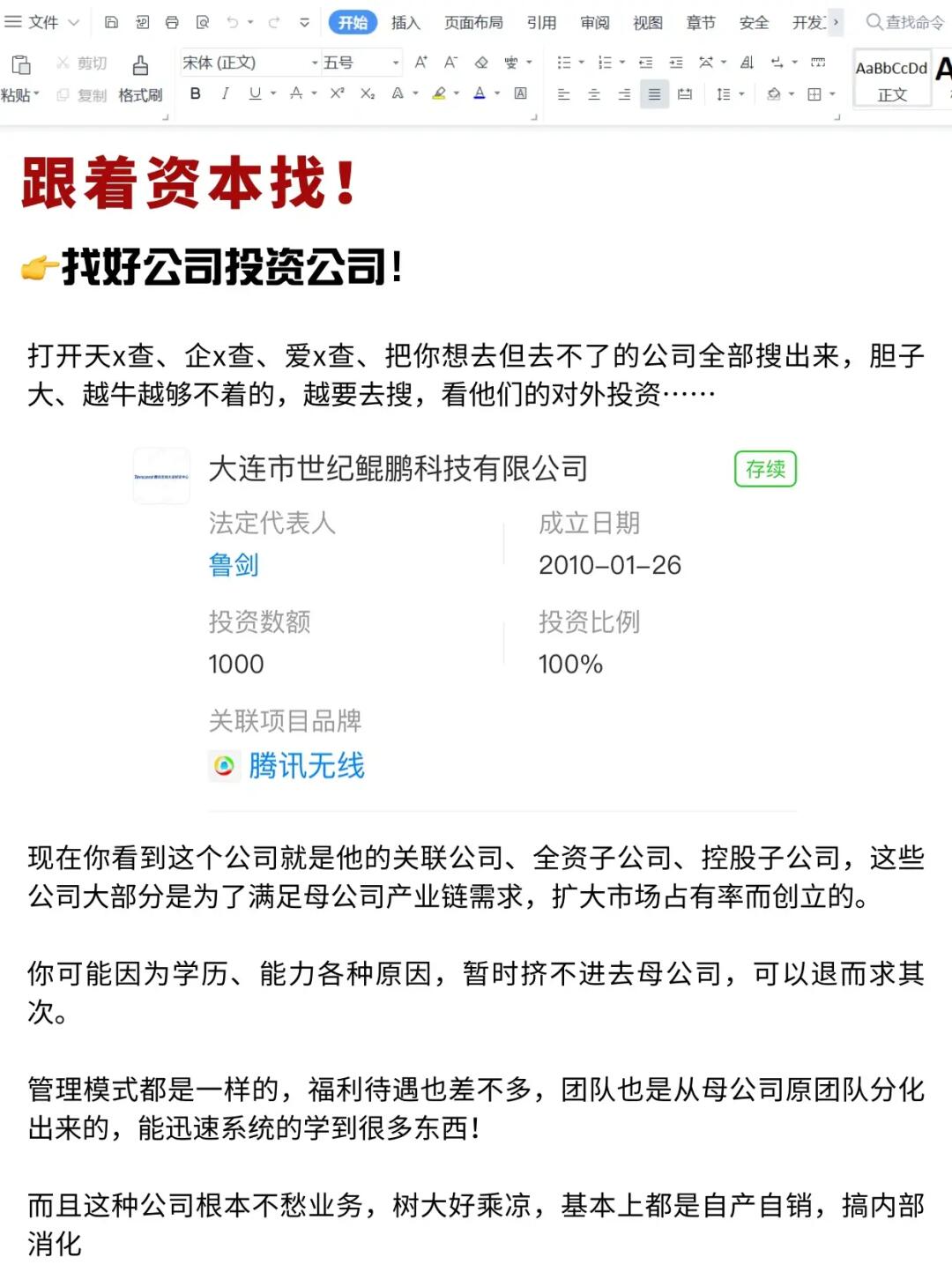 👉去找大公司的关联公司和子公司,全资控股的公司