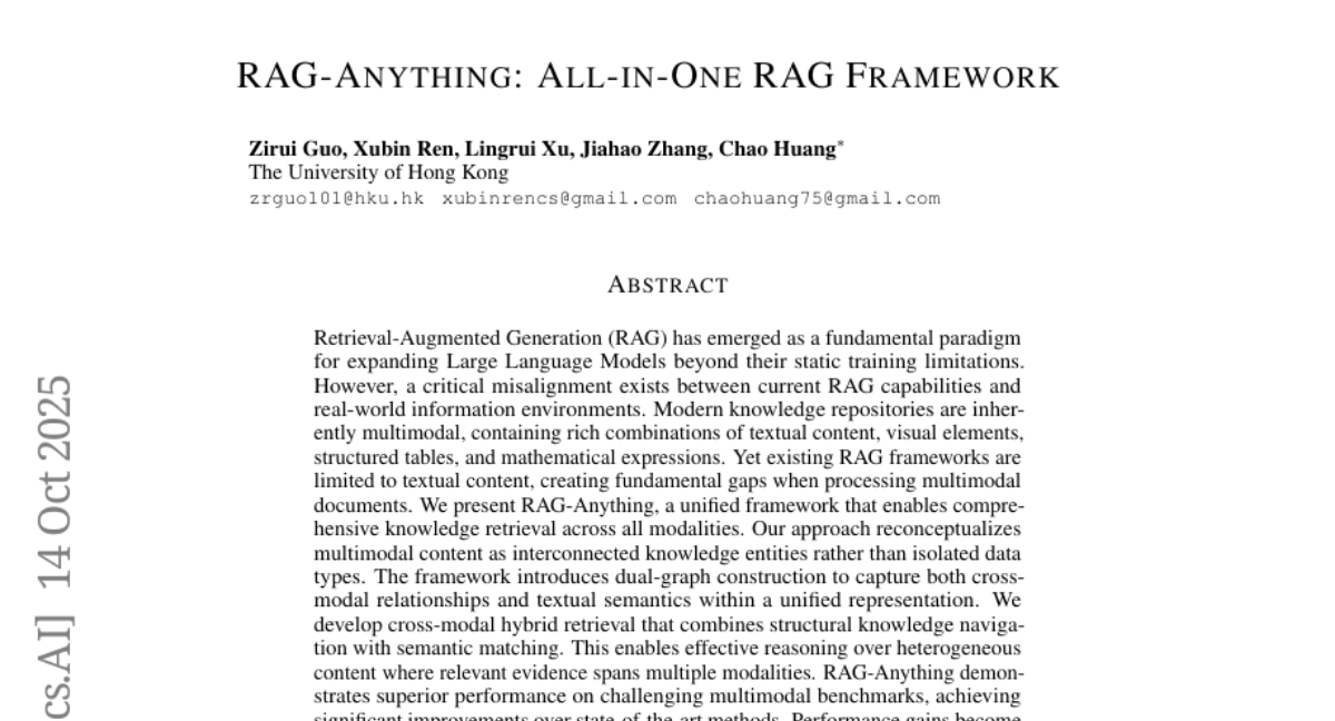 说到底,RAG-Anything解决的是一个我们每个人都会遇到的问题:如何在信息过载的时代快速找到我们真正需要的知识。无论你是学生、研究者、商业分析师还是普通上班族,这项技术都可能改变你获取和处理信息的方式。它让AI助手从只能"阅读"文字的初级助理,升级为能够理解图表、分析数据、解读复杂文档的全能伙伴。虽然这项技术还在不断完善中,但它已经为我们展示了一个更加智能、更加便捷的信息处理未来。对这项突破性研究感兴趣的读者,可以通过论文编号arXiv:2510.12323v1查询完整的技术细节和实验数据。