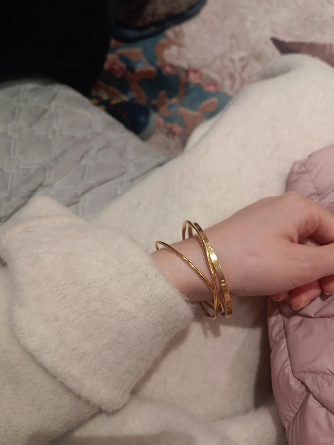 金手镯真的好土,谁懂 收回我以前的话,现在看来美貌的要命(爸爸送的真香),想看看大家的金手镯是怎么搭配的#黄金手镯 #金手镯 #素圈手镯 #想看看大家手上都戴了什么