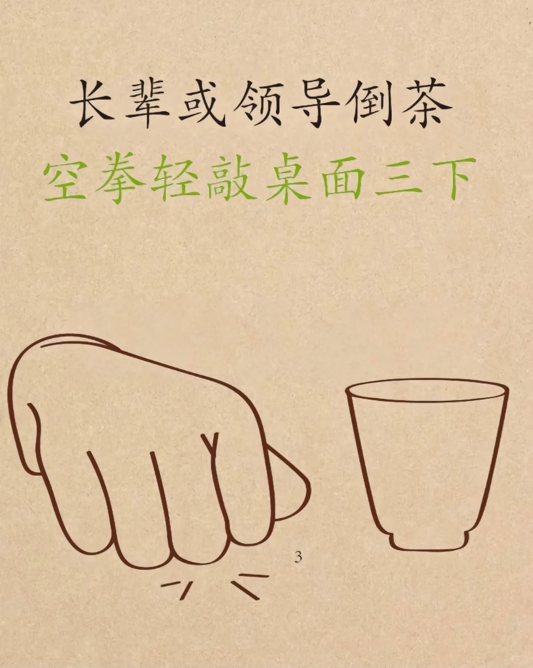 喝茶必备!我只偷偷告诉你🔥 喝茶必备知识! 扣茶礼节 1⃣️长辈或女生到茶不谢口茶礼 (到茶扶杯即可) 2⃣️小辈到茶。 (无名指轻敲三下) 3⃣️平悲到茶。 (两指并拢轻敲三下) 4⃣️长辈或领导到茶。 (空拳轻敲三下)
