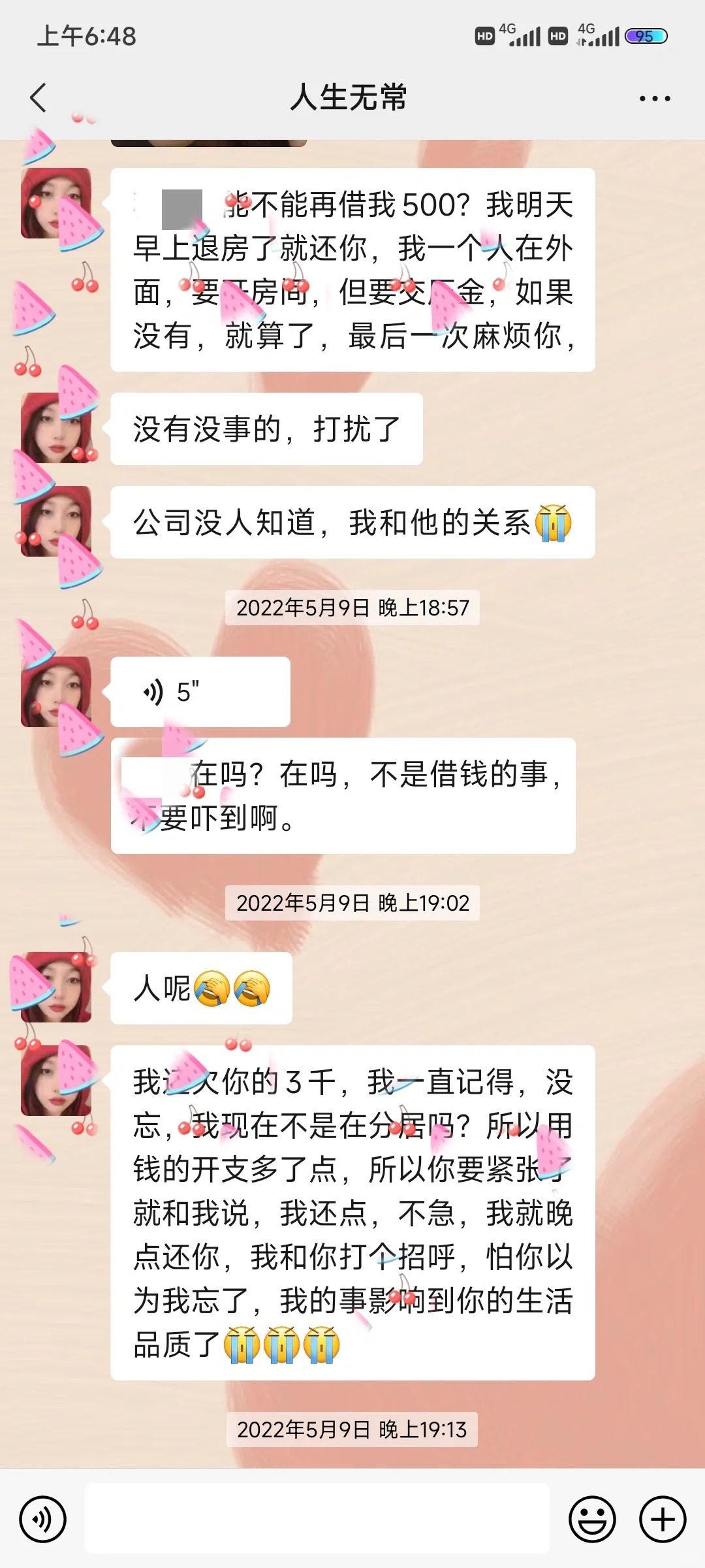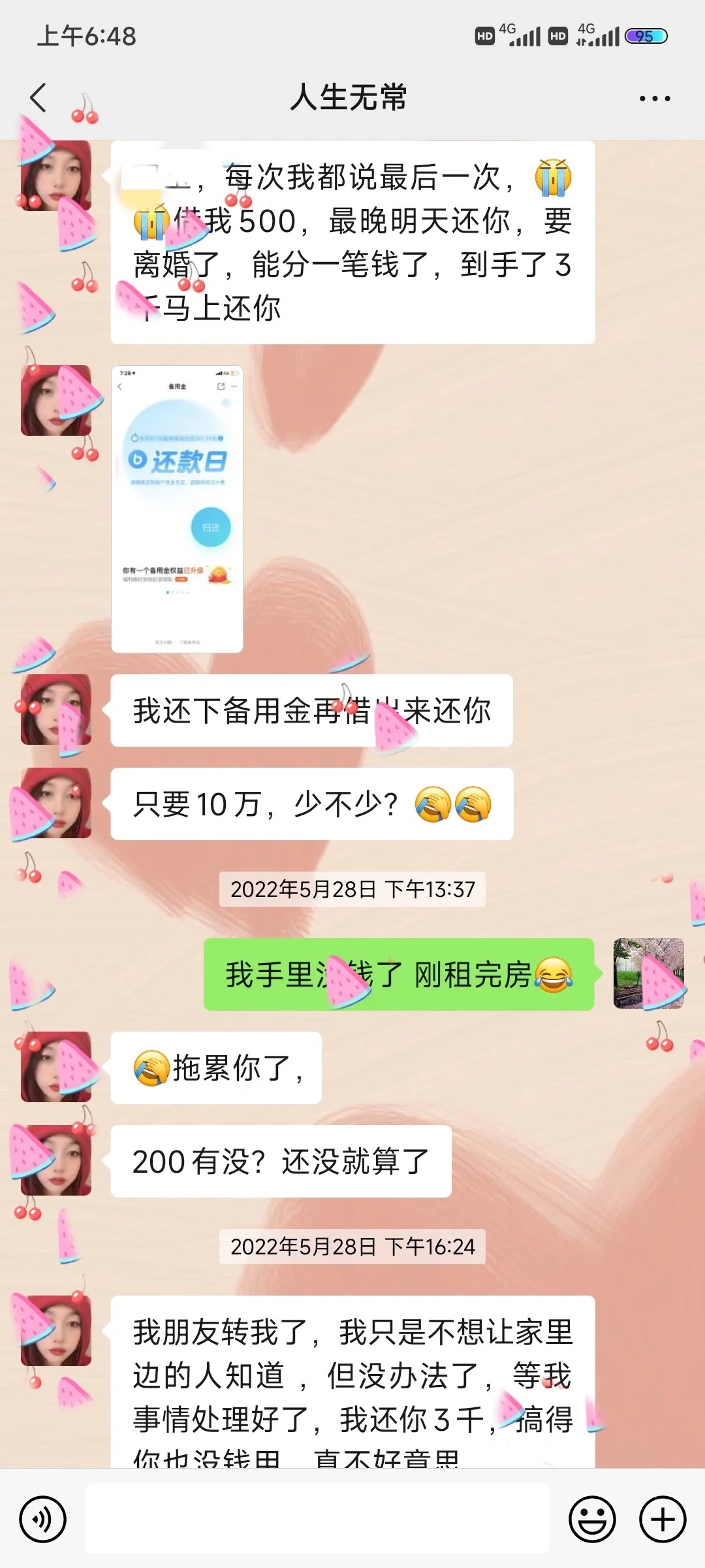 大家一定要保护好自己 引以为戒哦 某些人已经尝到甜头了 因为代价太小了 向这个借3000 那个2000 当你需要用的时候相当于肉包子打狗,有去无回 借钱需谨慎 这个真的纯靠人品支撑 亲们 可以帮我转发吗#聊天记录截图 #关于借钱