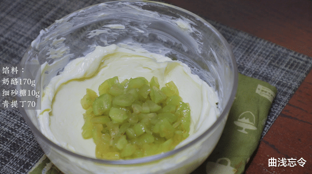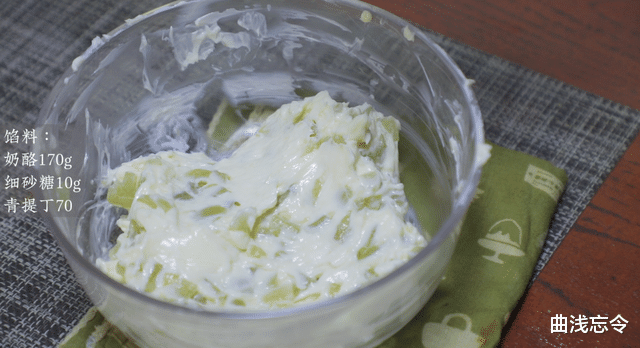馅料:奶酪170g、细砂糖10g、青提丁70g