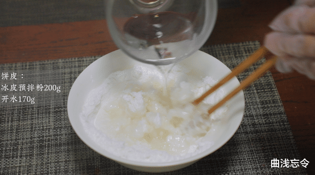 冰皮:冰皮预拌粉200g、开水170g、(抹茶粉1~2g)