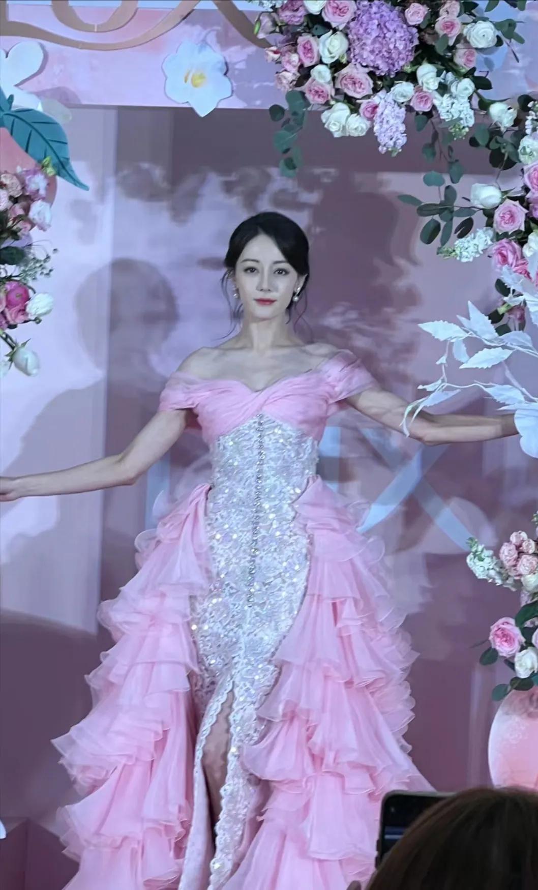 迪丽热巴最新线下活动造型又美出圈了,灯光不太行,但人真的美啊,像花仙子一样!一颦