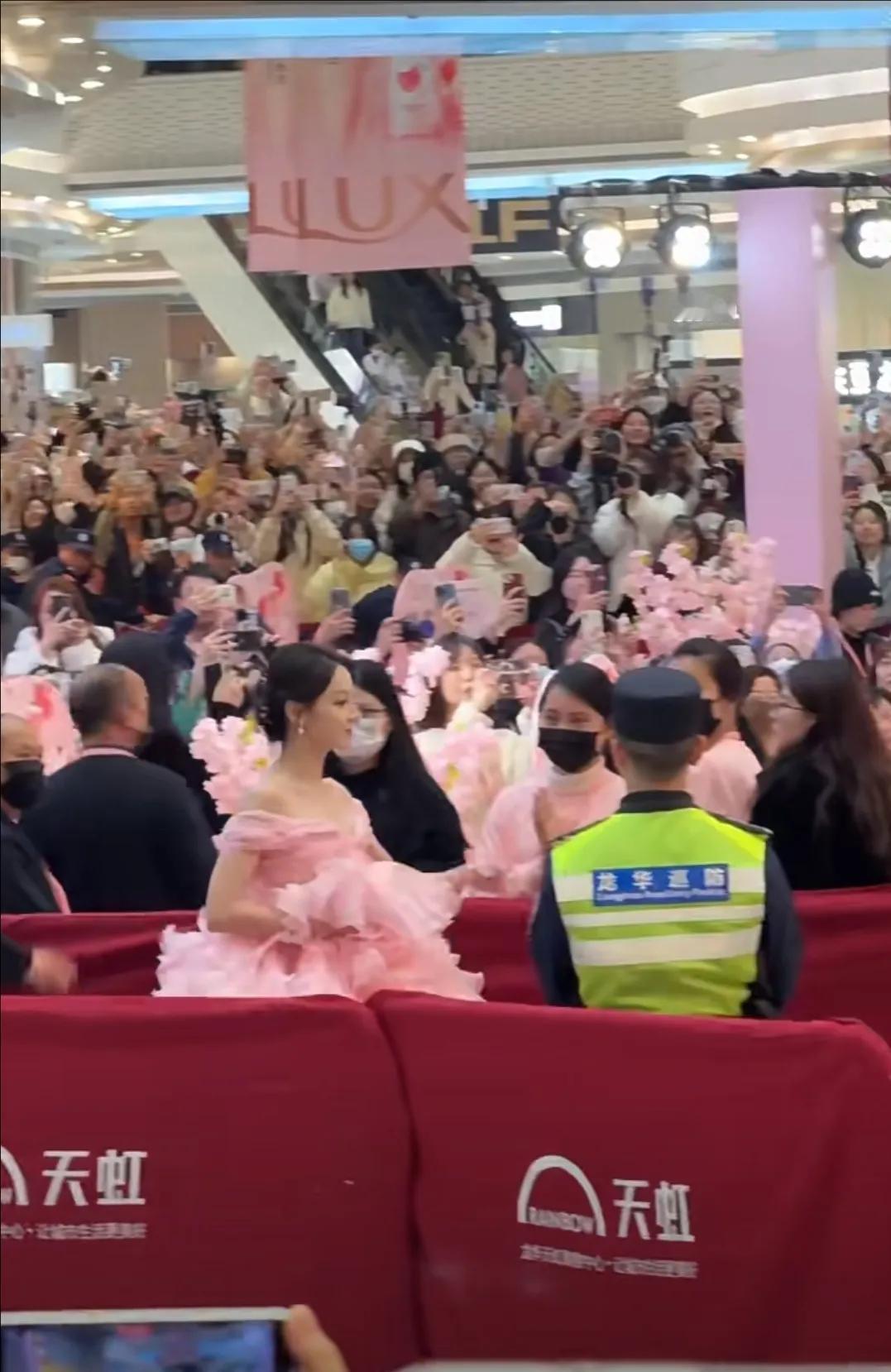 迪丽热巴深圳龙华天虹线下活动,穿了一袭粉色蓬蓬连衣裙,好美好仙呀,比模特还驾驭的
