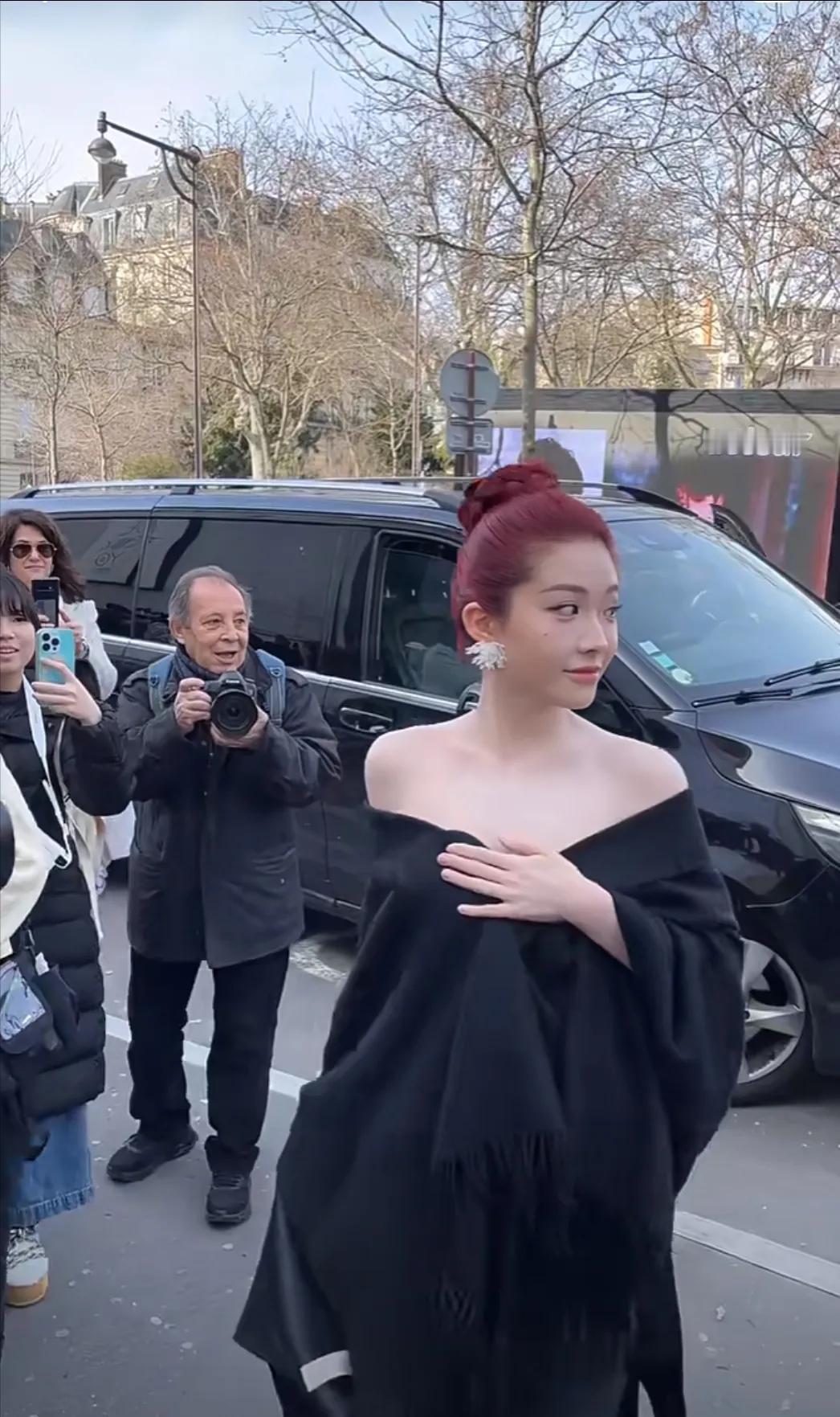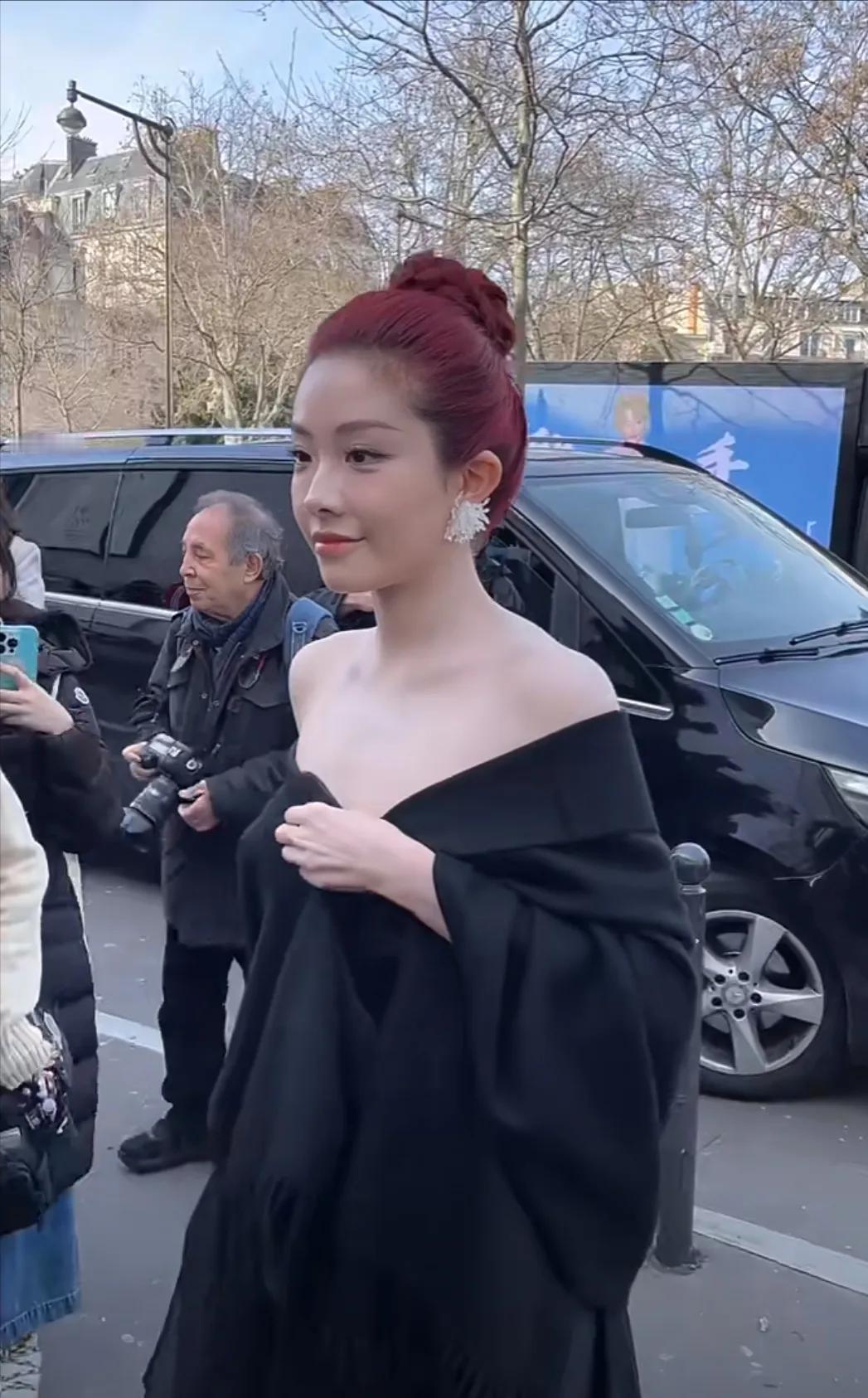 巴黎时装周喻言看秀造型,她好白呀,而且头骨脸型都好优越,成功驾驭这种考验脸型头型的红色感盘发,特别优雅有气质! #喻言# #妙笔生花#