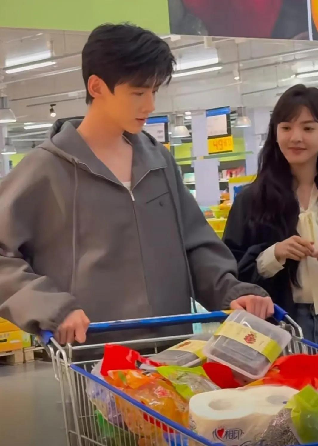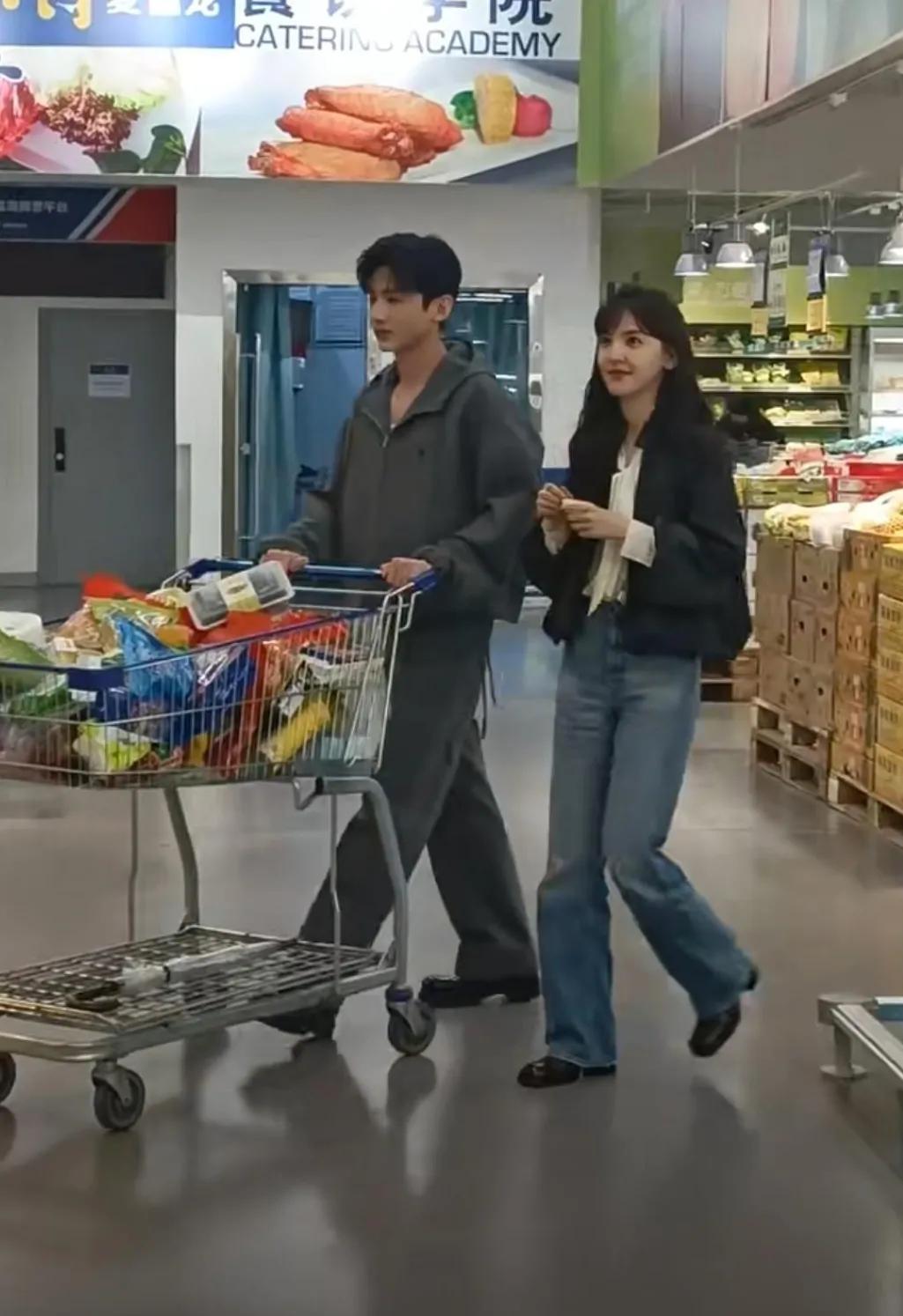 白敬亭和章若楠一起在超市拍戏,车都装满了零食,看起来就好幸福呀!白敬亭真的好像桑延啊!侧脸下颌线很漫画!章若楠很清纯很可爱,两人真的好配呀!