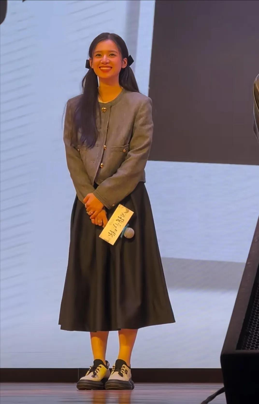 张婧仪北外路演,张婧仪给人感觉是很真诚、可爱的小女孩,这次的服装太普通了,换个人