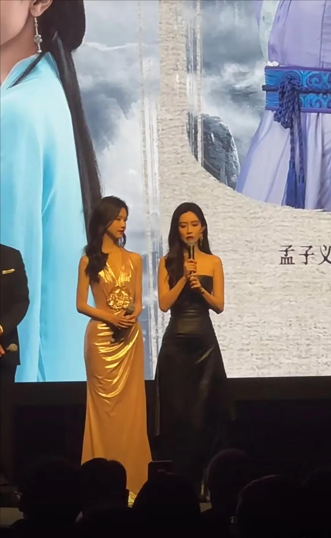 陈都灵,孟子义出席香港国际影视展活动,两个大美女同框好养眼,陈都灵这次的大波浪卷