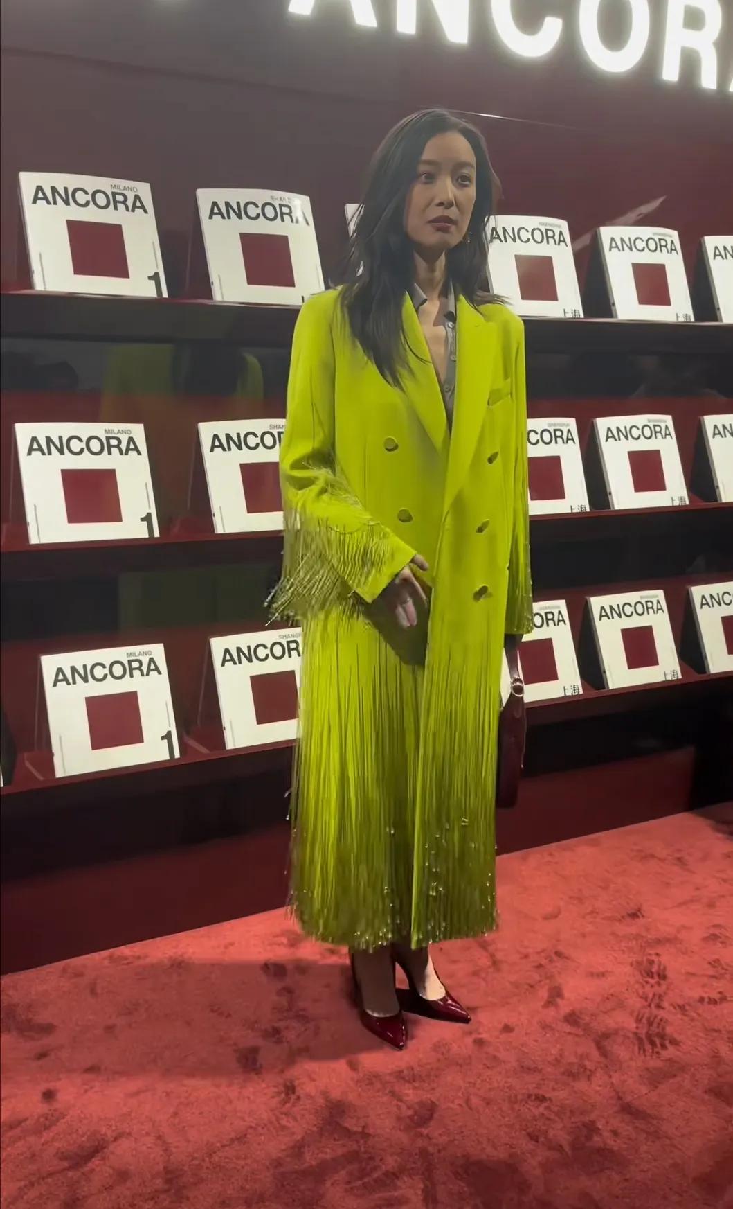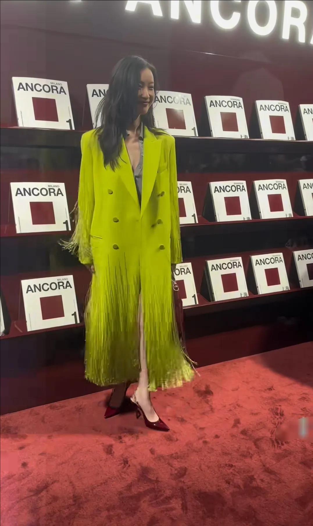 今日古驰活动倪妮一身红绿搭配流苏长款大衣造型好特别,如果换个人可以就是灾难造型,