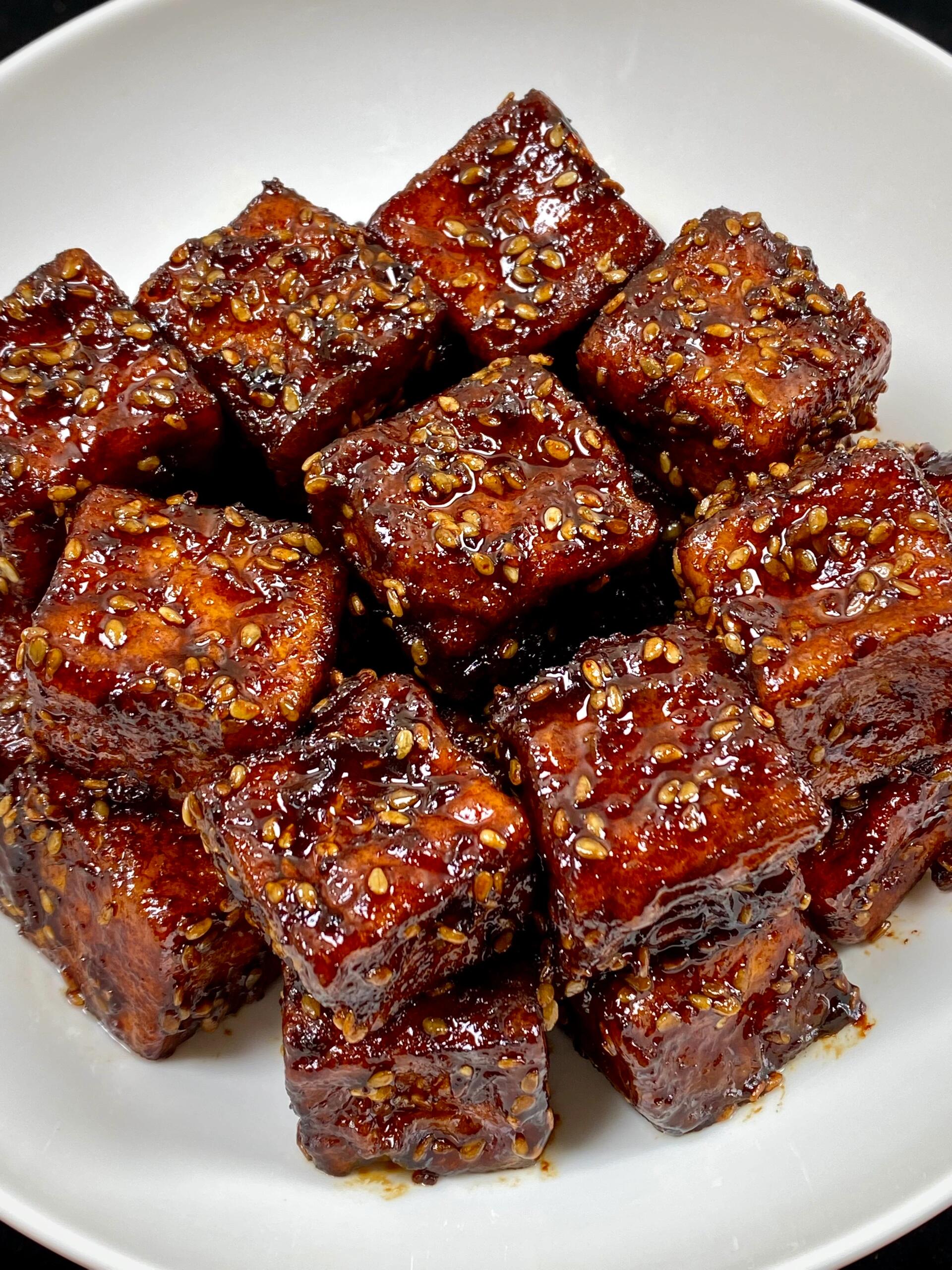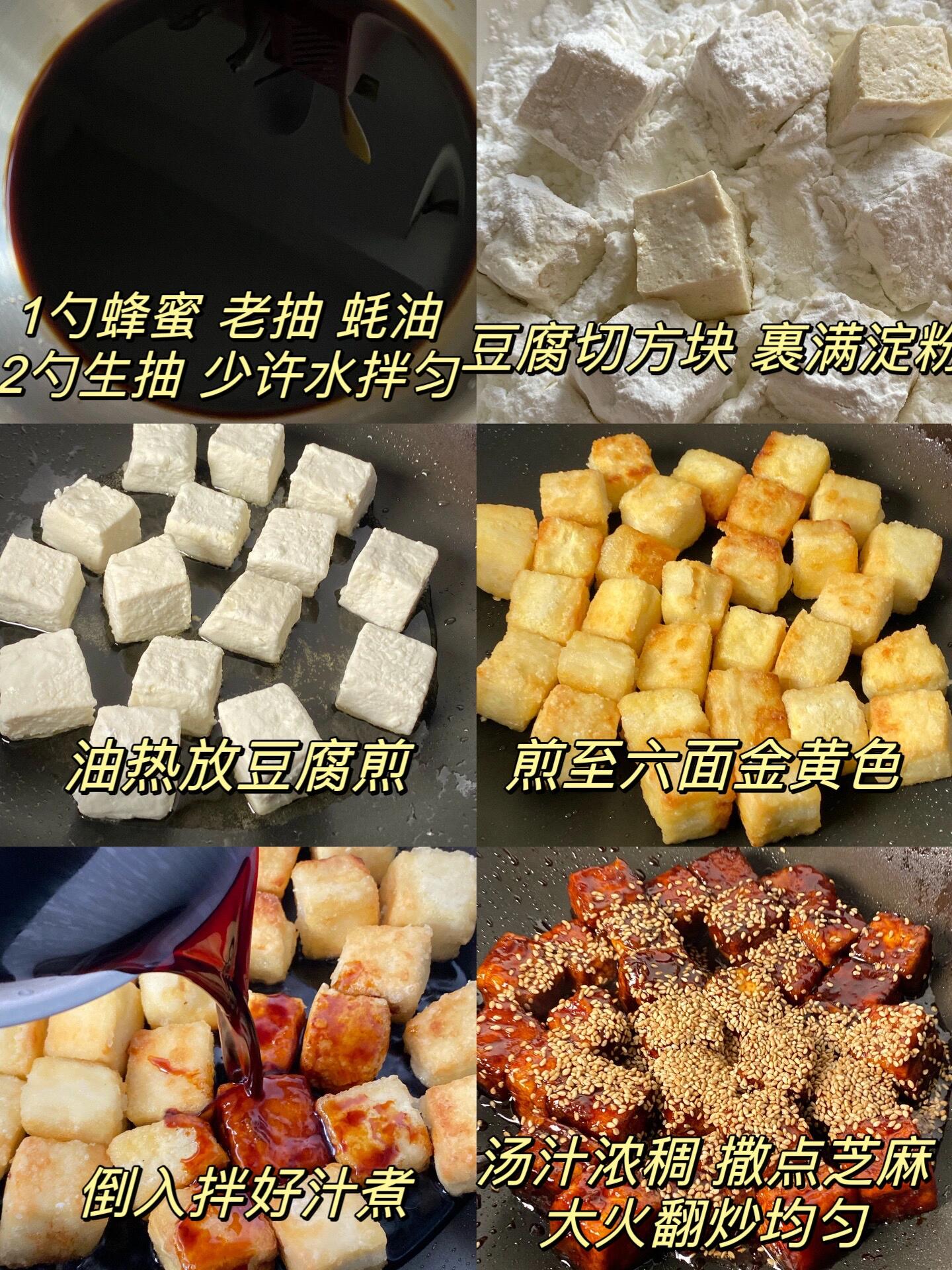 一、豆腐的厨房逆袭史!刚出锅的照烧豆腐,简直是“米饭小偷”!金黄的外皮焦香酥脆,咬一口“咔嚓”响,里面的豆腐嫩到爆汁,甜