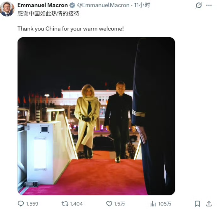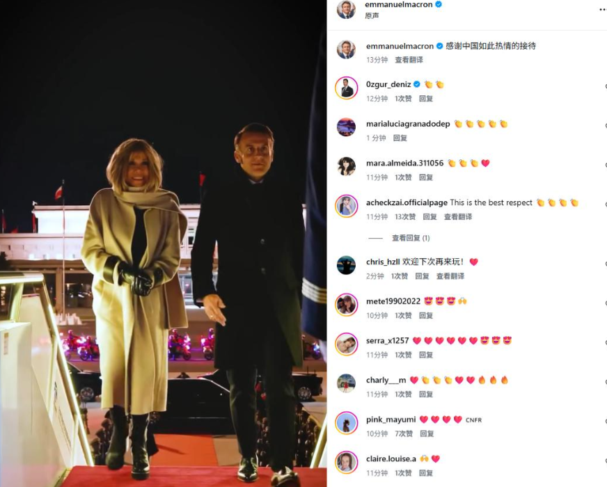 近日法国总统夫妇访华成为网友热议的焦点,他结束访华之行回国后在社交平台上晒出了访华的精彩瞬间,虽然已经过去几天了,但仍能感受到总统先生很享受这个过程,还配文称感谢中国如此热情的接待。