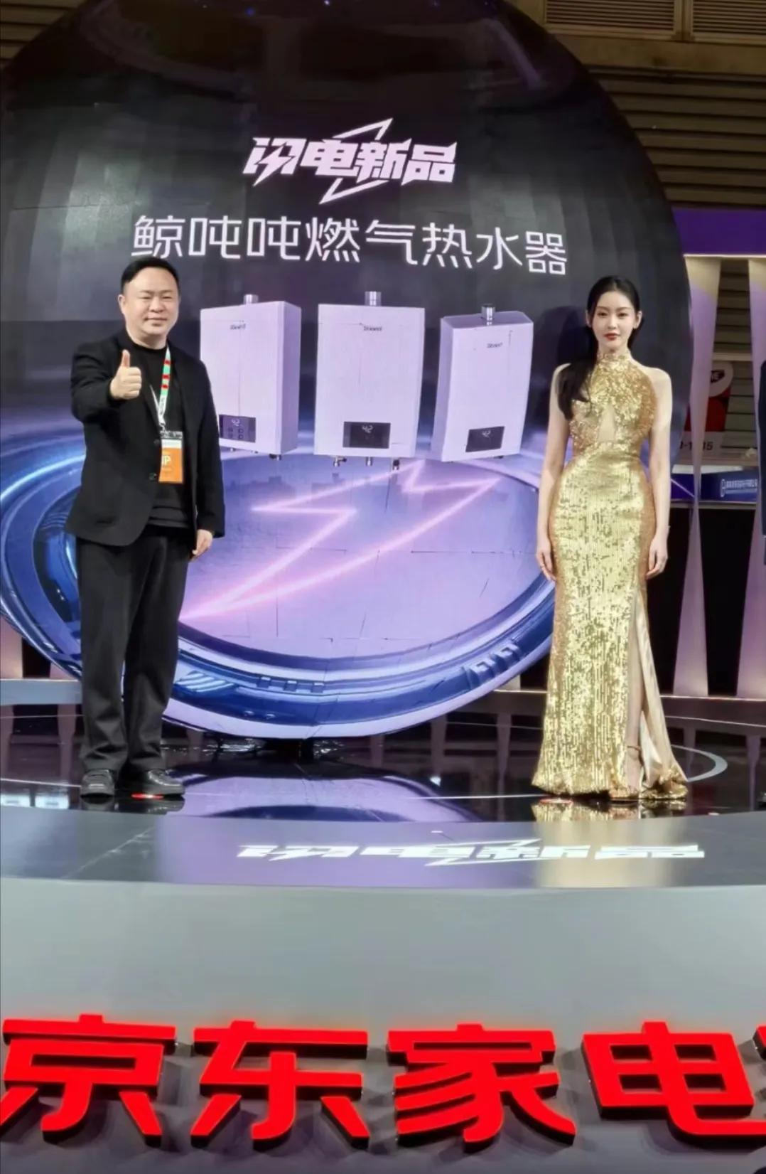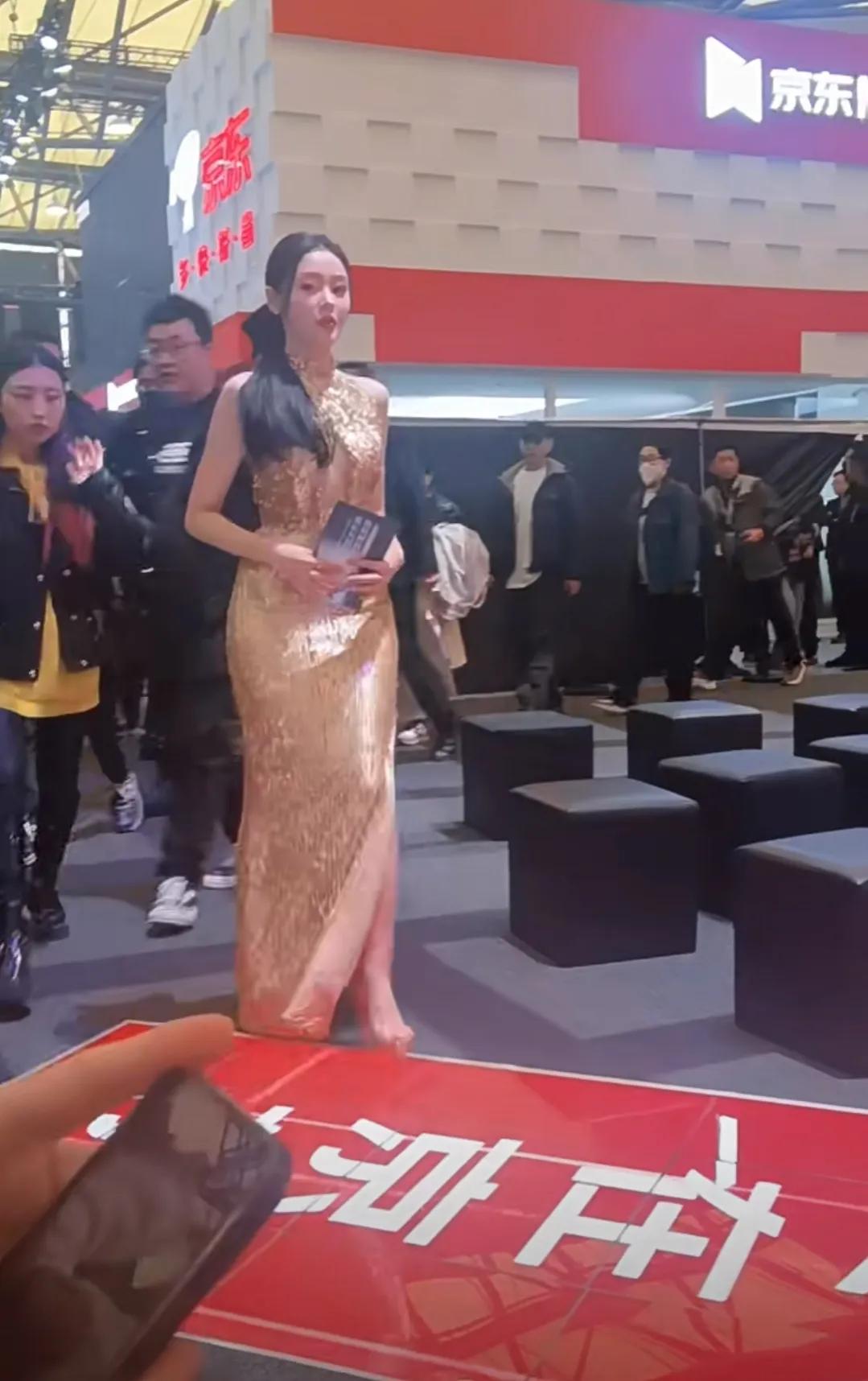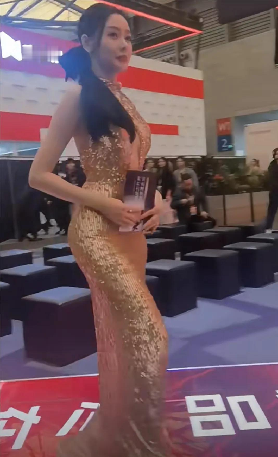 上海AWE展看到了张天爱,她今天好美啊,这件金色礼服凸显出了她的好身材,这一次还