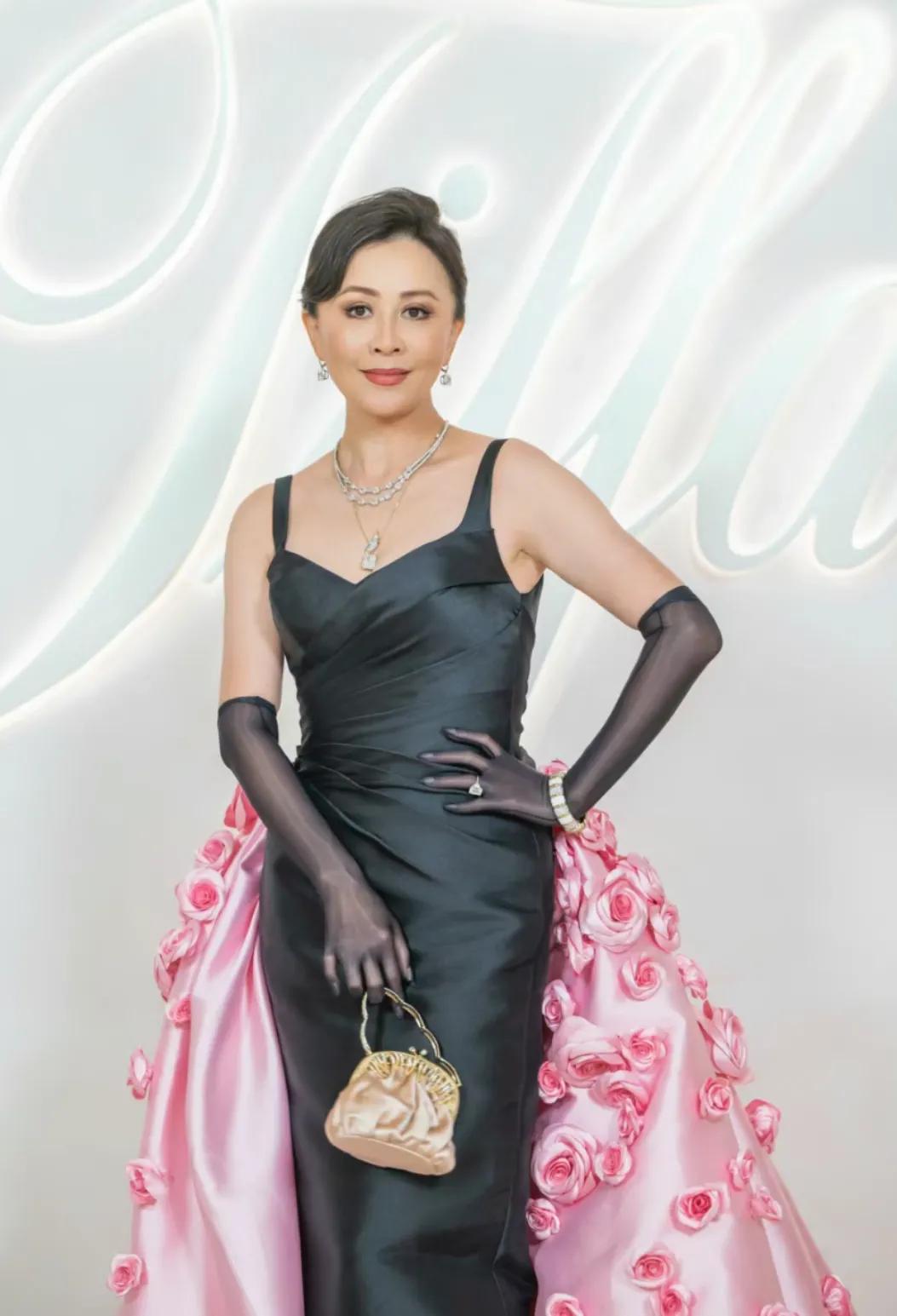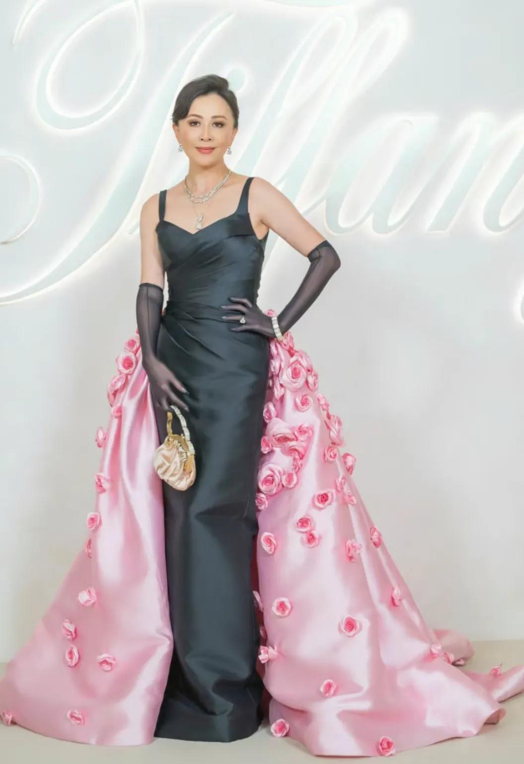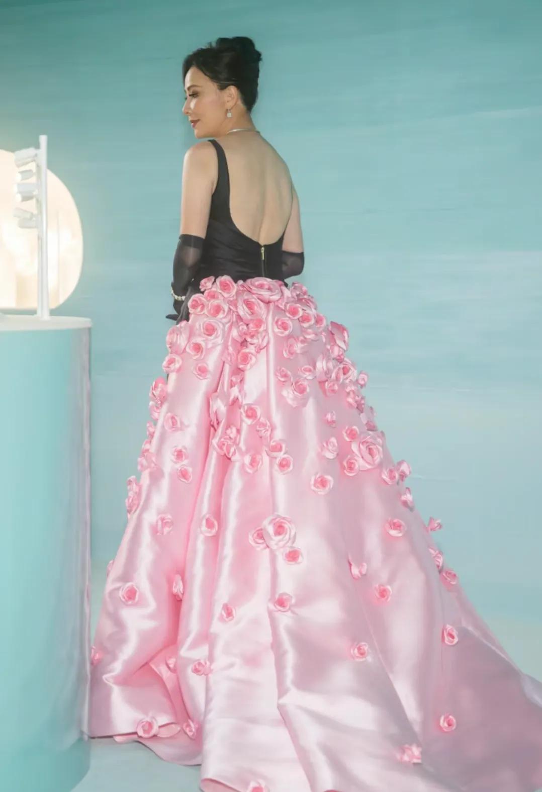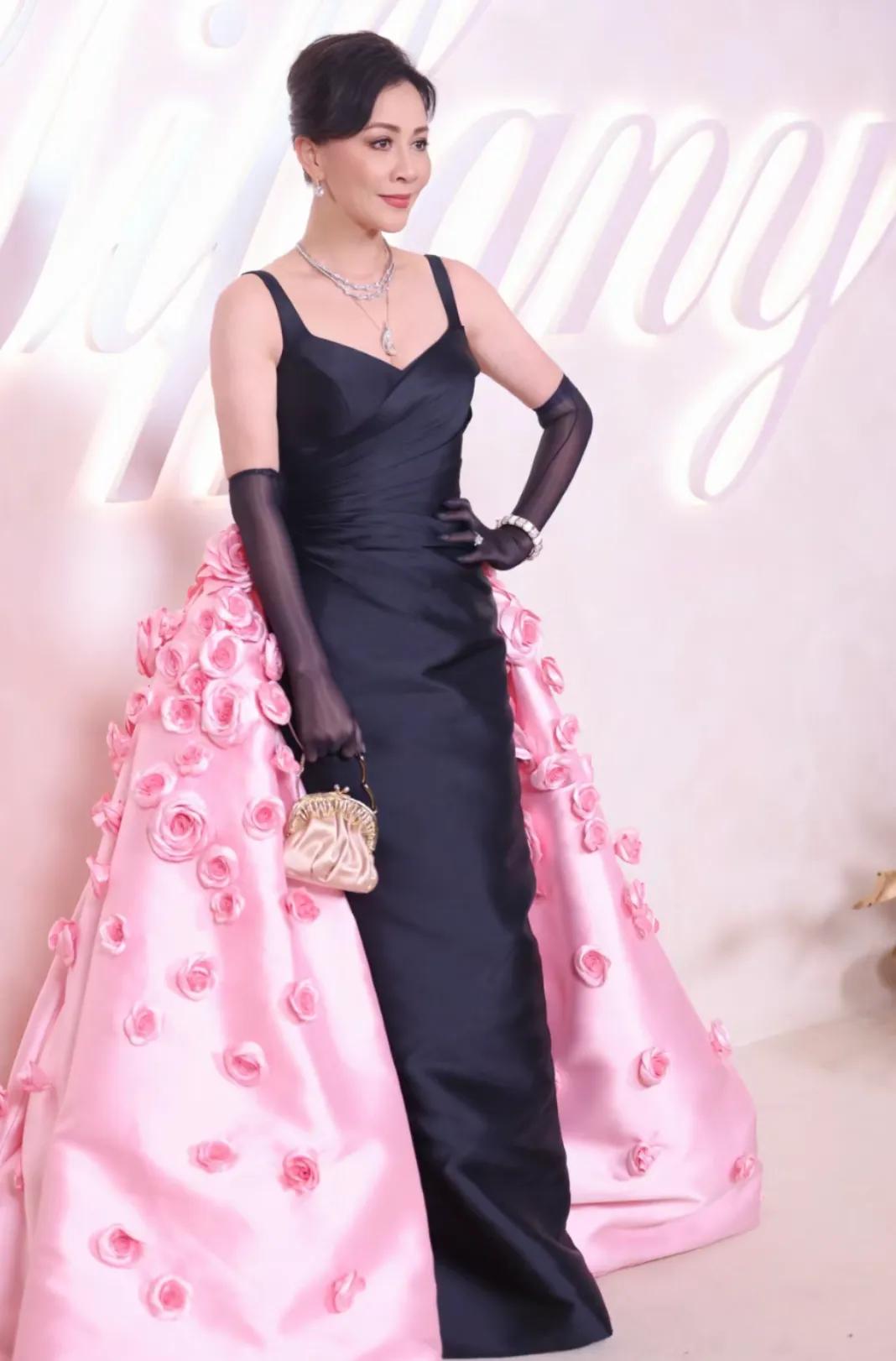 蒂芙尼晚宴活动,刘嘉玲这这造型有点一言难尽,手套像丝袜,手包和衣服完全不搭。粉红