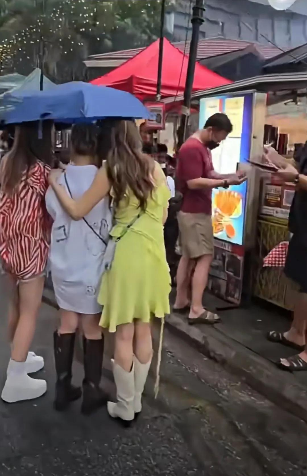 我网友在新加坡老巴刹偶遇容祖儿和twins在拍摄综艺节目《因为我们是朋友吖2》,阿娇看着好娇小,但是都好美好有气质,三个姐妹花关系真好,都是形影不离 #妙笔生花#