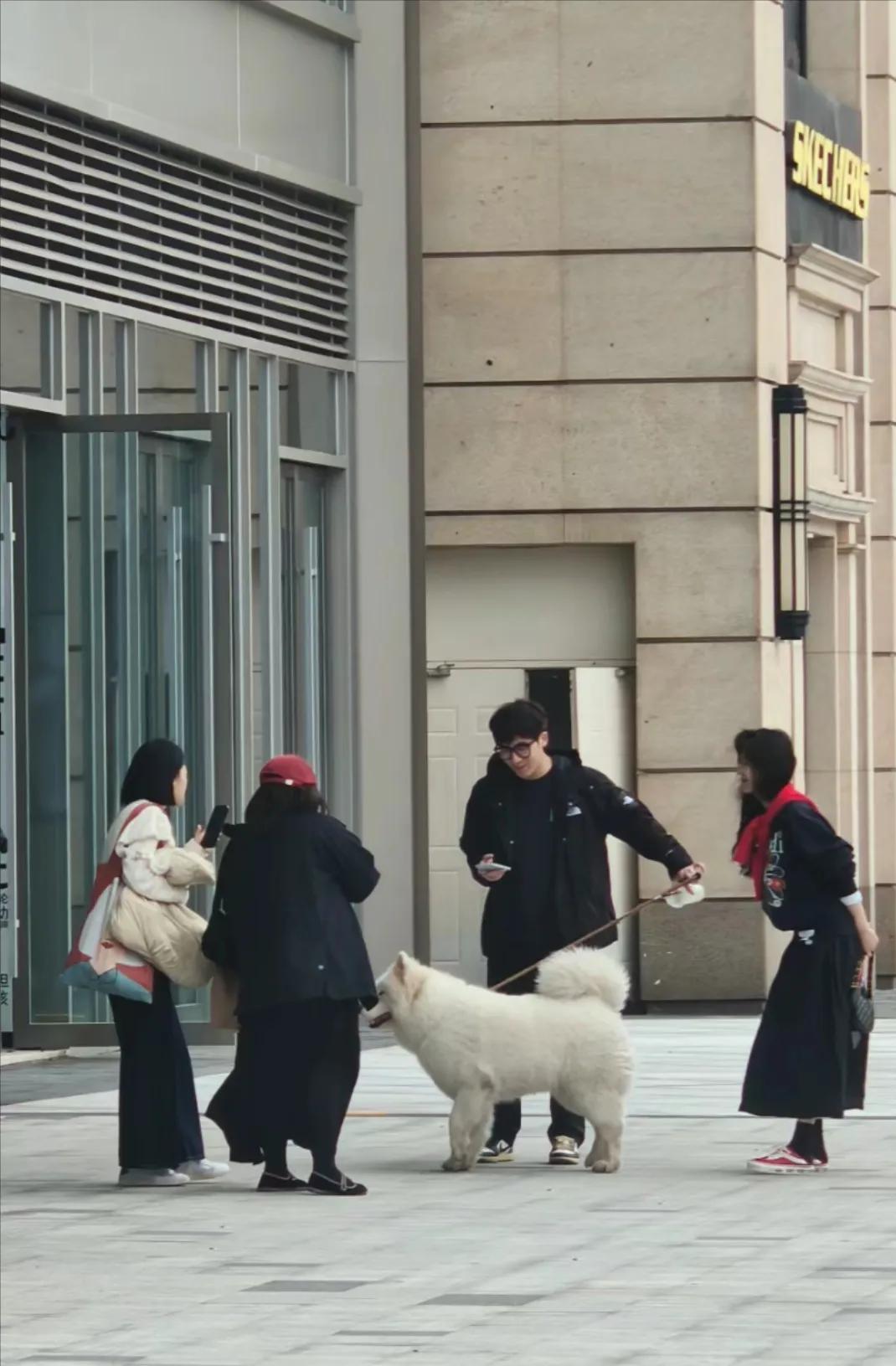 有网友在重庆长嘉汇偶遇章若楠,她在和一只萨摩耶互动,看着好有爱啊,真的是一个有爱