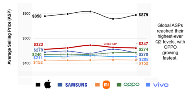 OPPO的平均售价跃居全球第二 图源:Counterpoint Research