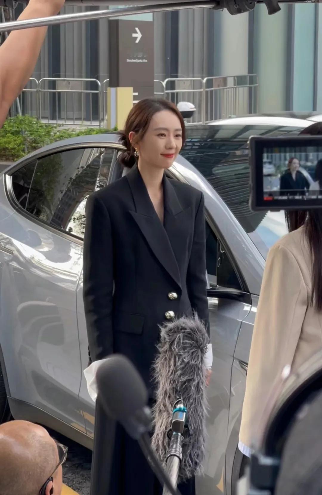 深圳偶遇童瑶拍戏,一身黑色西装的童瑶好有气质,像个女强人似的,本人高高瘦瘦的,确