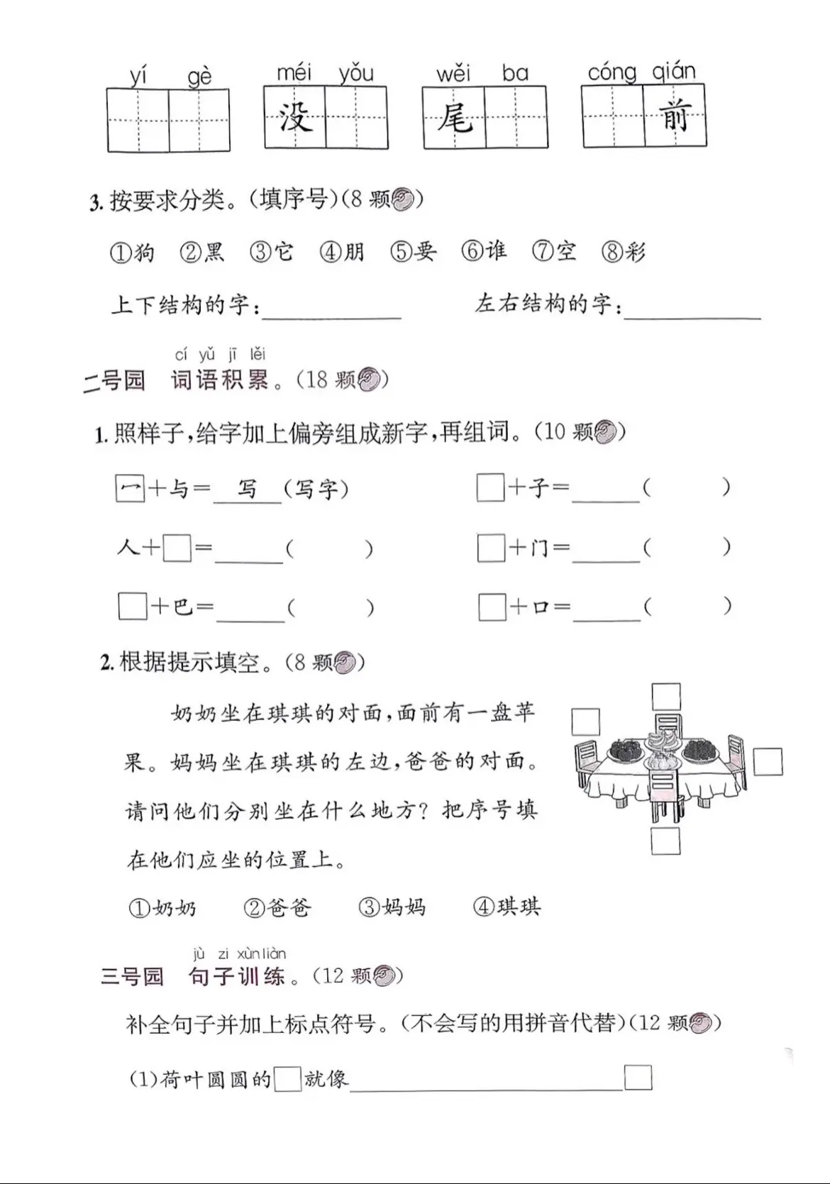 一年级语文上册《第六单元》测试卷。学完第六单元的家人们,这一套题比较简单,后面有答案,需要的可以利用周末给孩子练一练。