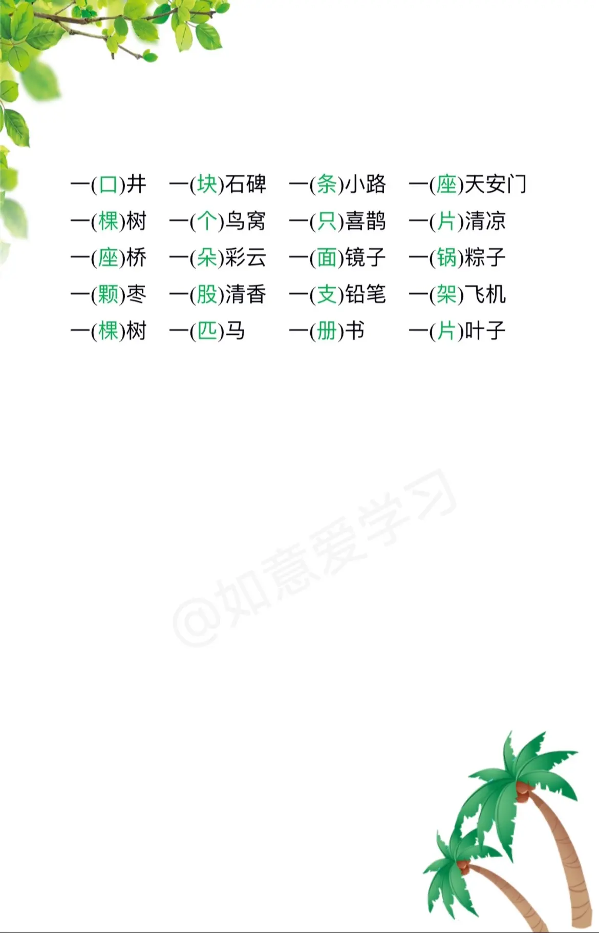 一年级语文下册《期中必考》词语搭配。马上期中考试了,给孩子读一读吧!