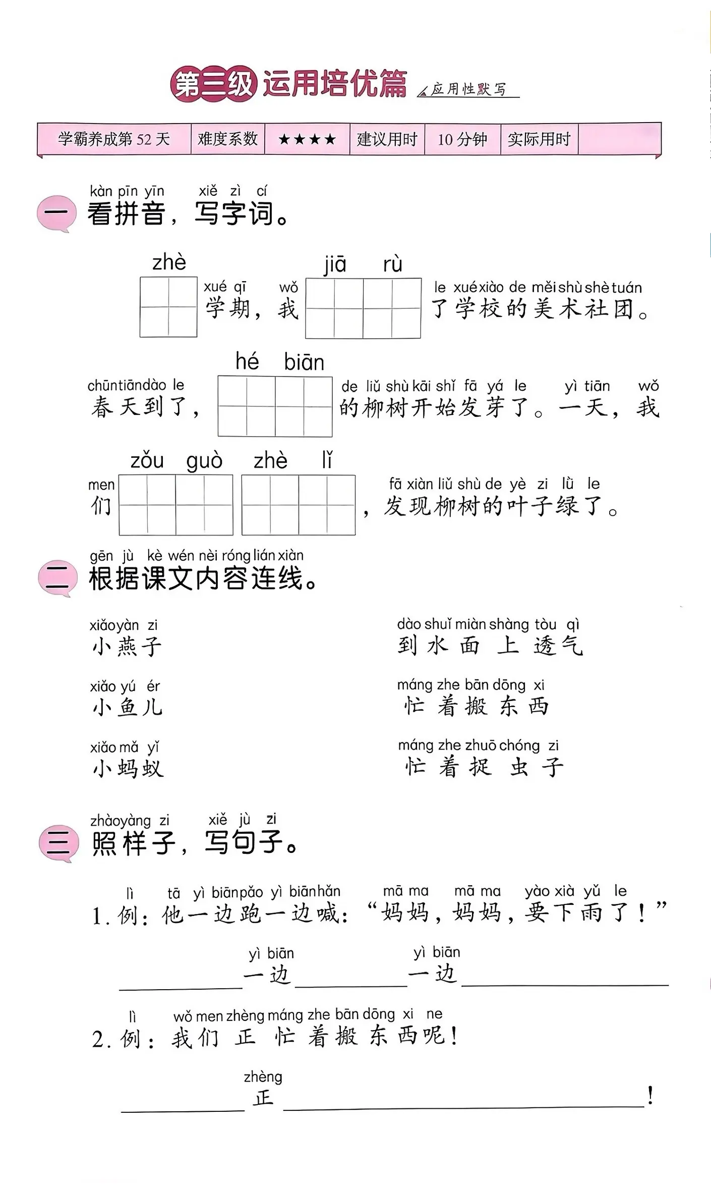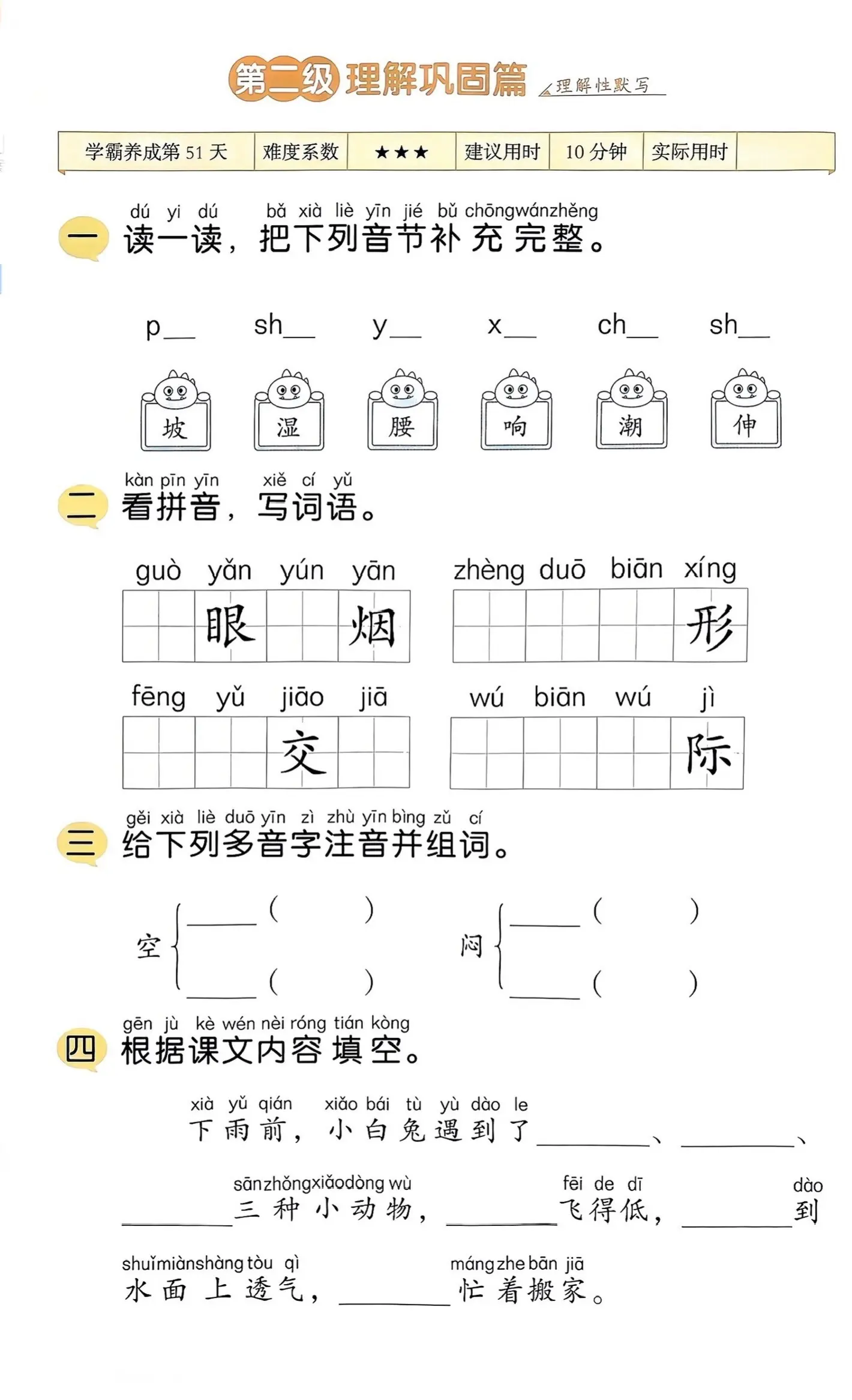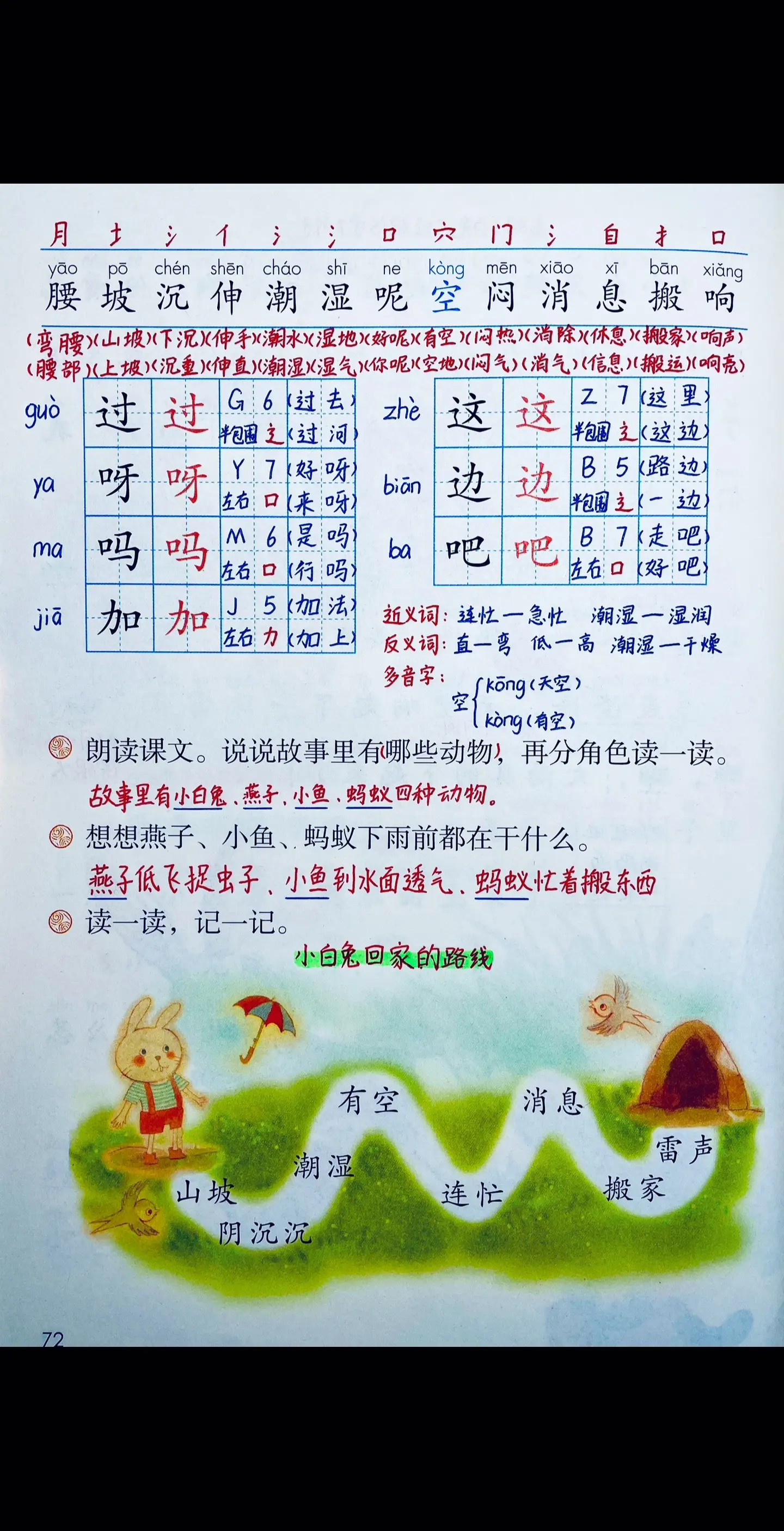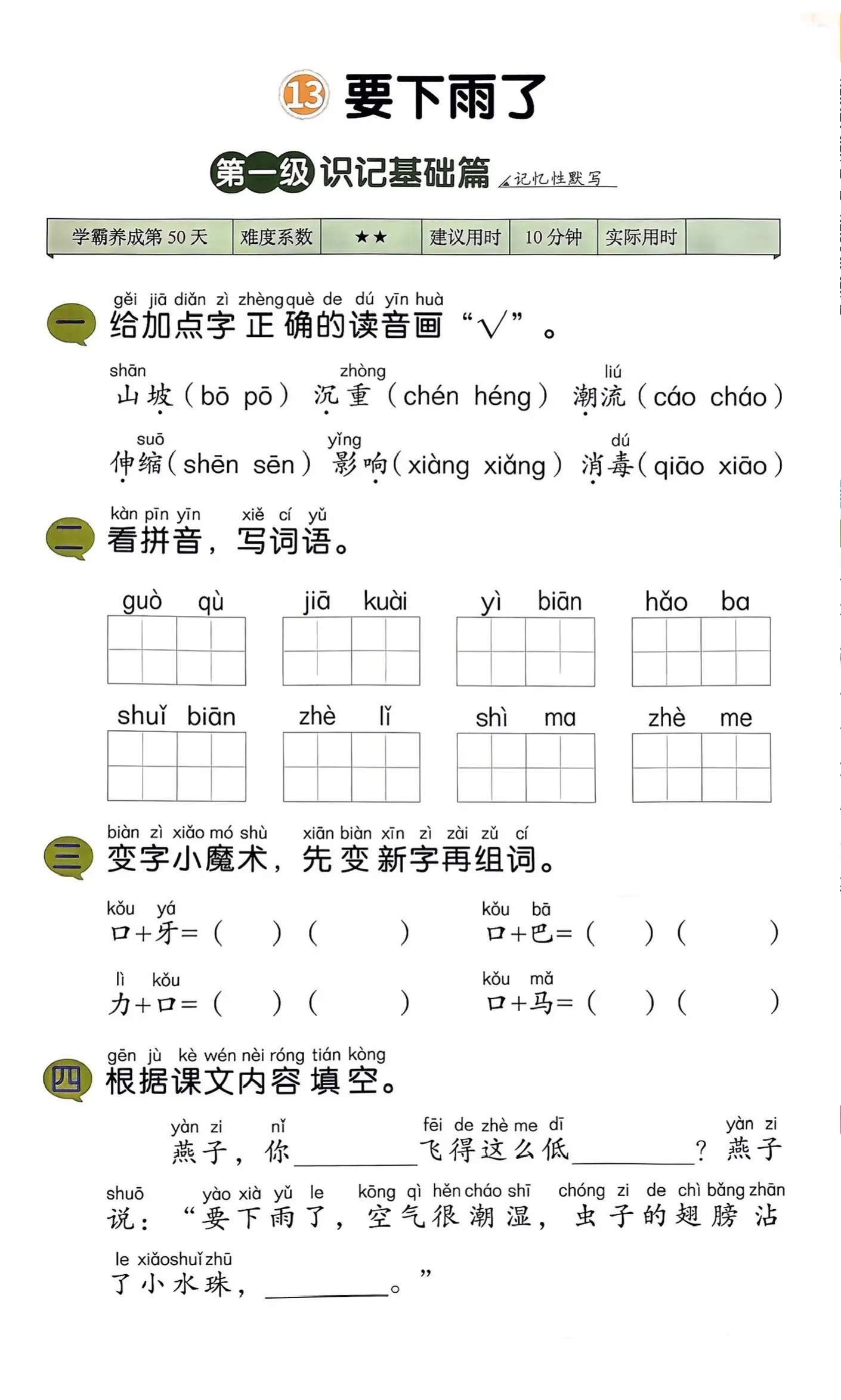 一年级语文下册《要下雨了》笔记+分级练习题+课文朗读。