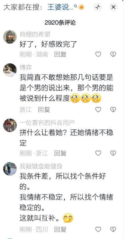 王婆很委婉表示,你上来就想找人结婚(还这么功利)就算真的找到人结婚,估计还得离婚。然后女的呵呵一笑。