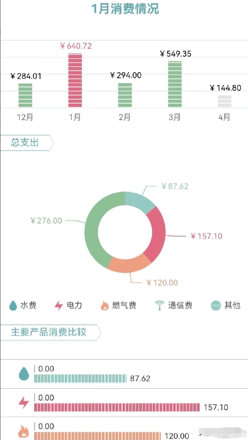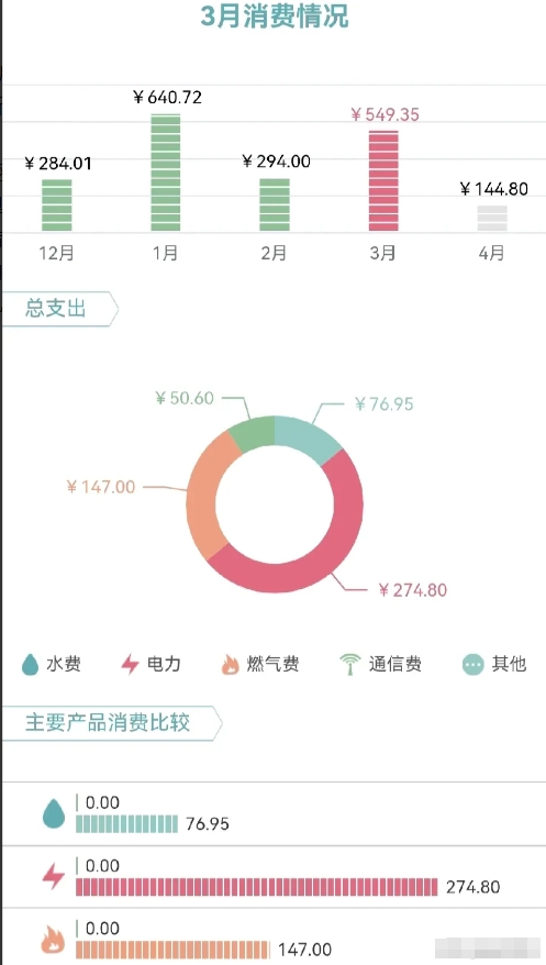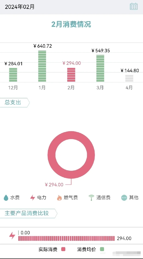 电费(23年12月为137.5元,24年1月157.1元,2月294元,3月274.8元,4月144.8元)也跟季节有关,也基本可判断费用正常。