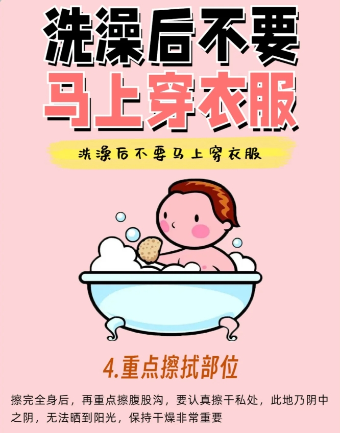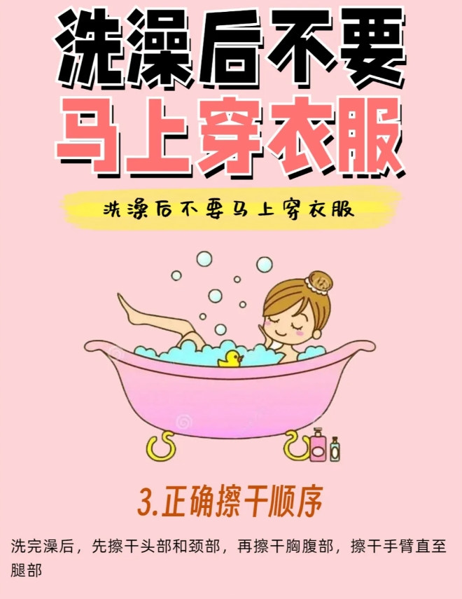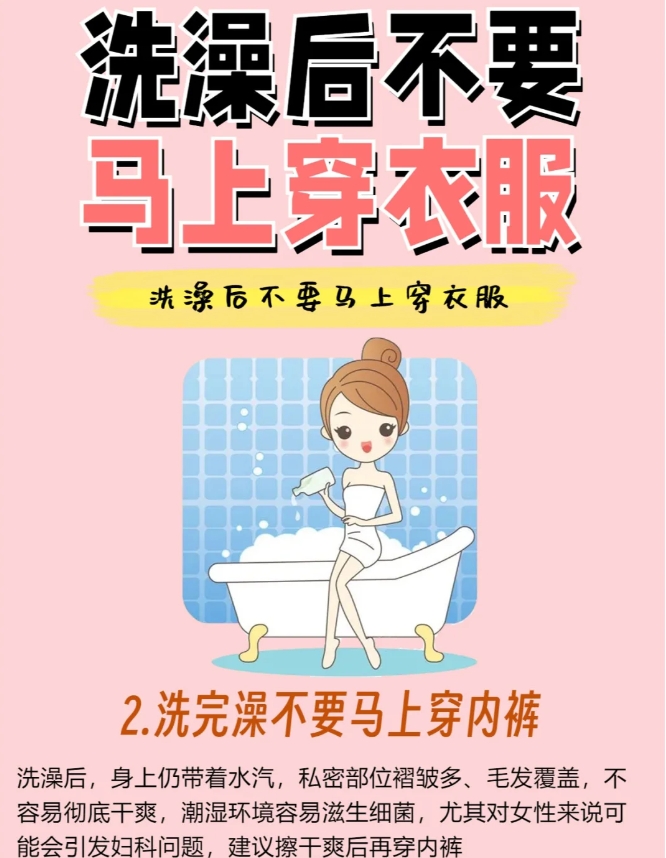 需要注意的是,洗完澡是否直接穿内裤是个人习惯的问题,并无对错之分,重要是大家要保持私处干燥和清洁,身体才会更健康哟~