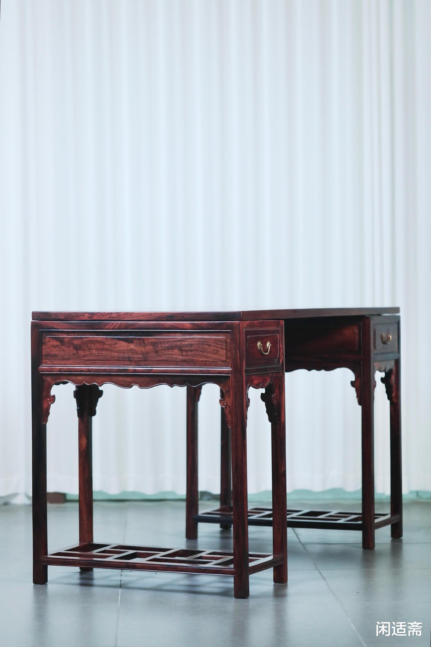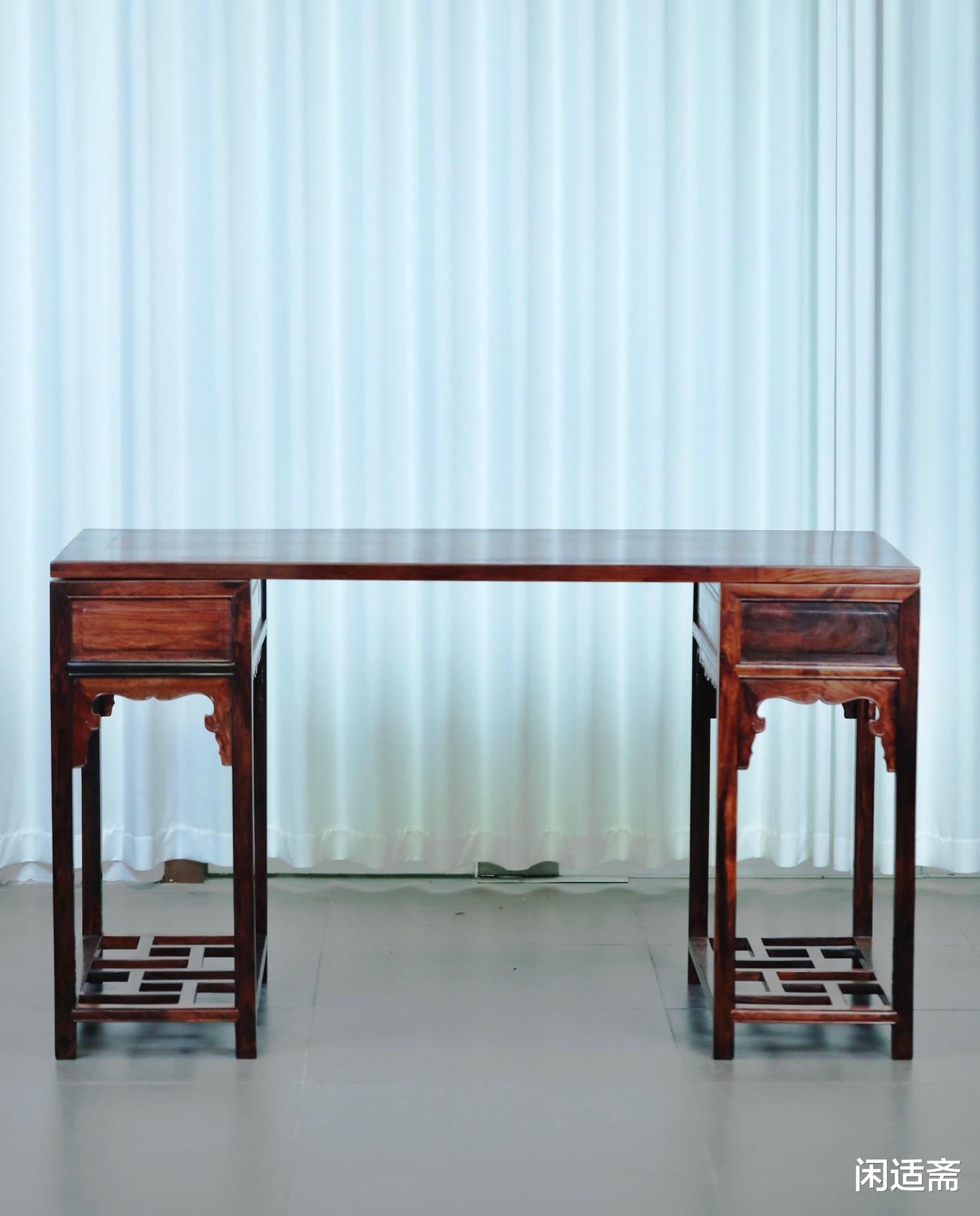 伍炳亮大师的监制,为这件书桌注入了超越时代的艺术灵魂。作为深耕传统家具领域数十年的大师,伍炳亮深谙明清家具法度,他并未一味复刻古器,而是在传承经典形制的基础上,巧妙融合现代审美与人体工学:书桌的台面尺寸、抽屉高度、桌腿弧度,都经过反复测算与调整,既保留了明清家具的端庄大气,又满足了现代人使用的舒适需求,真正实现了 “经典而不失实用,厚重而兼具灵动” 的设计理念。这种 “守正创新” 的工艺思路,让书桌不仅是一件 “复刻品”,更是一件符合当代生活场景的 “活态艺术品”,彰显出当代中式家具制作的巅峰水准。