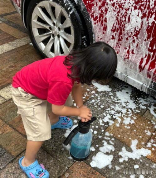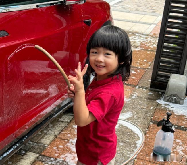 一转眼都长这么大了!蔡少芬分享儿子鱼蛋洗车照,小家伙好可爱,长得既像爸爸又像妈妈