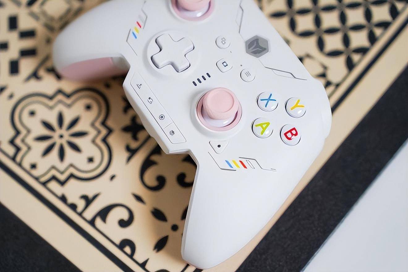(2)性能方面,它配备RAESHA1000万次mini光轴按键,响应速度提升约80%,寿命比普通Xbox手柄高十倍;四转子马达配合H桥芯片提供丰富立体振动反馈,动作和战斗场景沉浸感明显。模块化霍尔摇杆支持力度调节,减少漂移问题并延长寿命。手柄支持有线、蓝牙及2.4G三模连接,兼容PC、Switch、安卓及苹果设备,多平台切换方便,延迟表现优秀。内置电池续航充足,日常长时间游戏不用频繁充电。