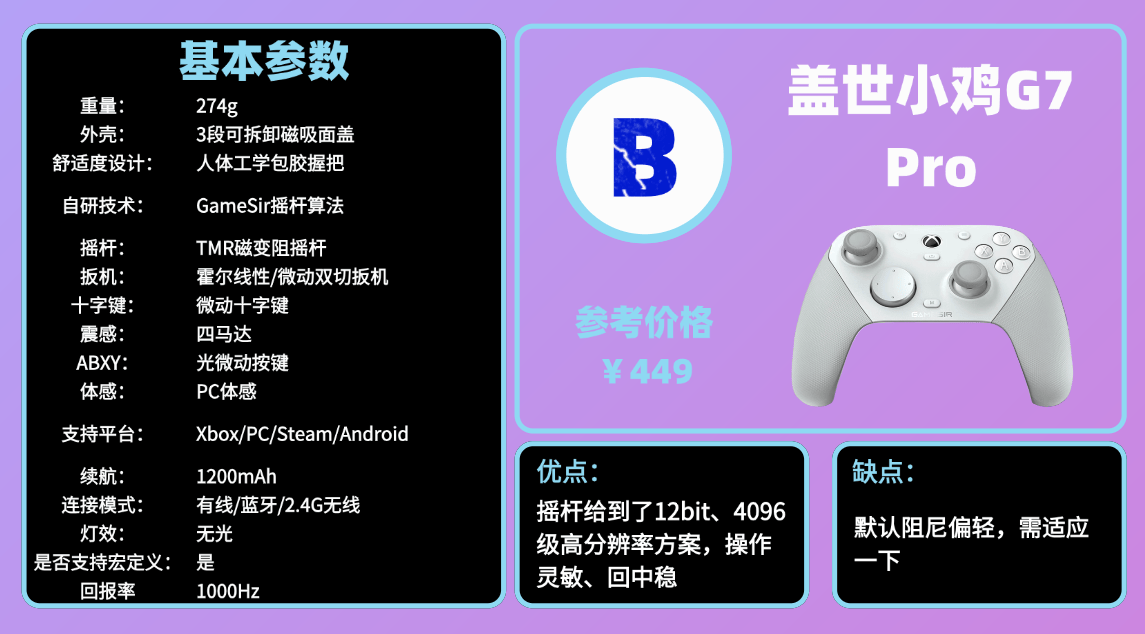 推荐产品9:盖 世小鸡 G 7 Pro游戏手柄
