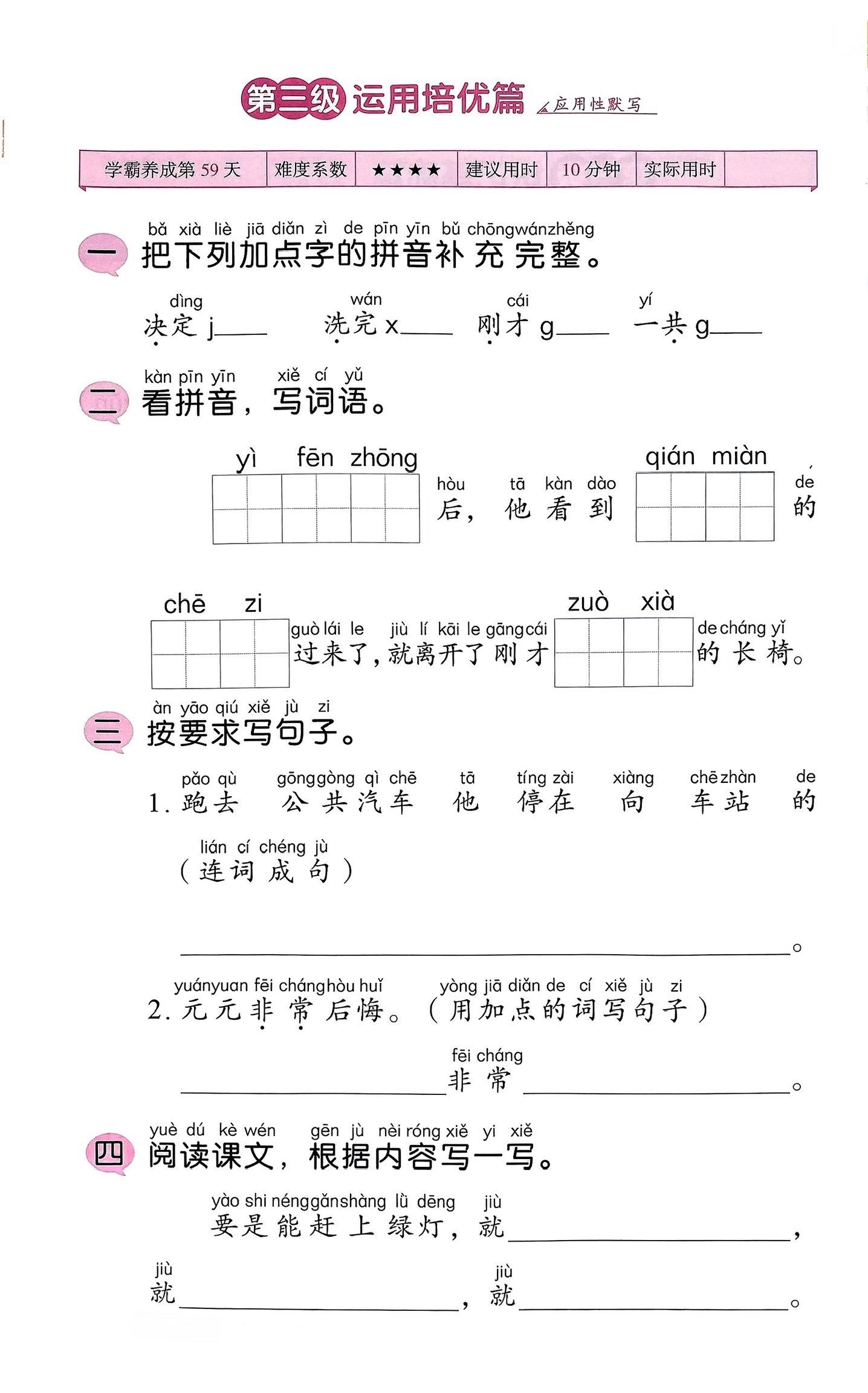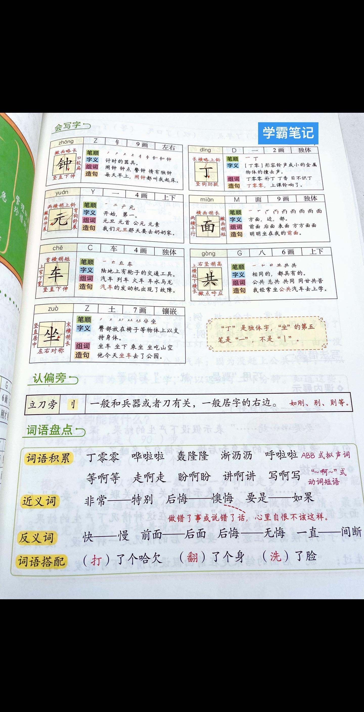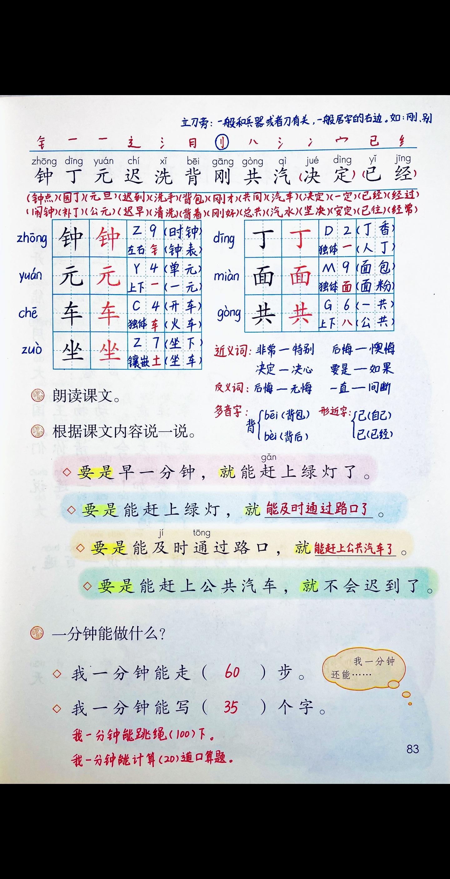 一年级语文下册《一分钟》笔记+练习+一二类字整理。