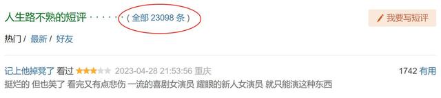 相比较而言,《人生路不熟》共有23035条评论,评论数是《长空之王》的61倍,甚至连《长空之王》票房一半都不到的《这么多年》,都有14930条评论。