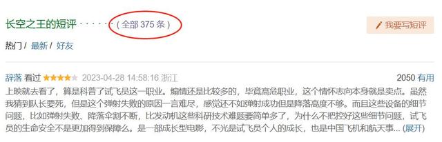 这就很奇怪了?难不成看了《长空之王》的人都不喜欢评论吗?而且仅仅只有374条评论的话,豆瓣不是不应该出评分吗?毕竟评论人数不够,到底是无人评论,还是被删了呢?这就不得而知了。