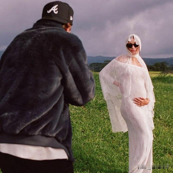 恭喜!贾斯汀晒双人写真官宣即将升级当爸爸,照片中的海莉身穿婚纱,小腹微隆,孕相明