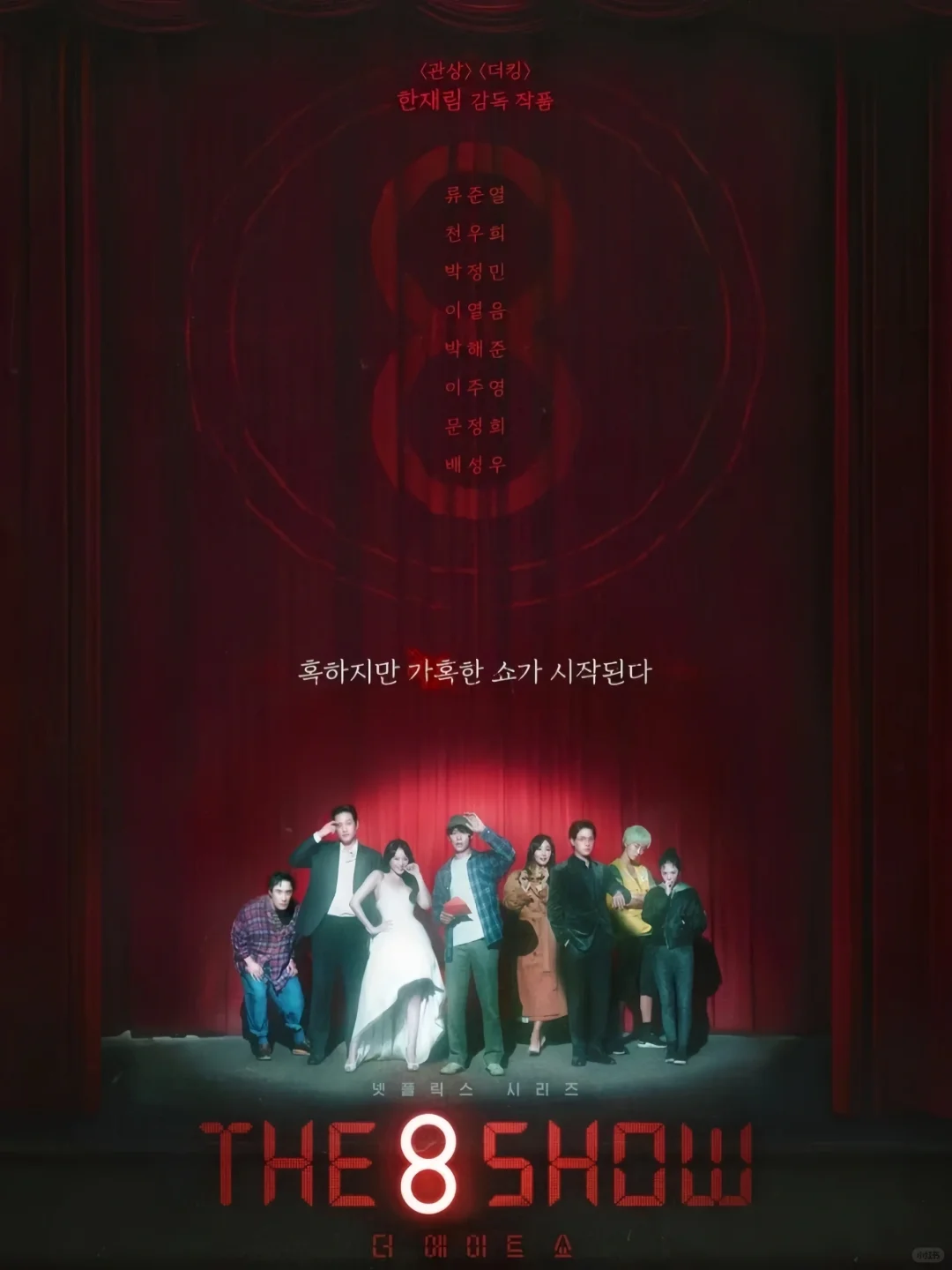 📺剧名:The 8 Show (2024.05.17开播) ✨类型:悬疑/惊悚 🕰️时长:共8集 🌈演员:柳俊烈、千玗嬉、朴正民、李烈音、朴解浚、李周映、文晶熙、裴晟祐等 ✅又一部鱿鱼版生存游戏韩剧来袭,全员合作到反目成仇,悬疑惊悚题材,真的狠狠地期待住了! ✅这部剧改编自网络漫画《金钱游戏》和《争夺游戏》讲述八个人参加一档诱人又危险的游戏节目,被困在一座8层楼的神秘建筑中,谁撑的时间长,后面到手的奖金越丰厚……