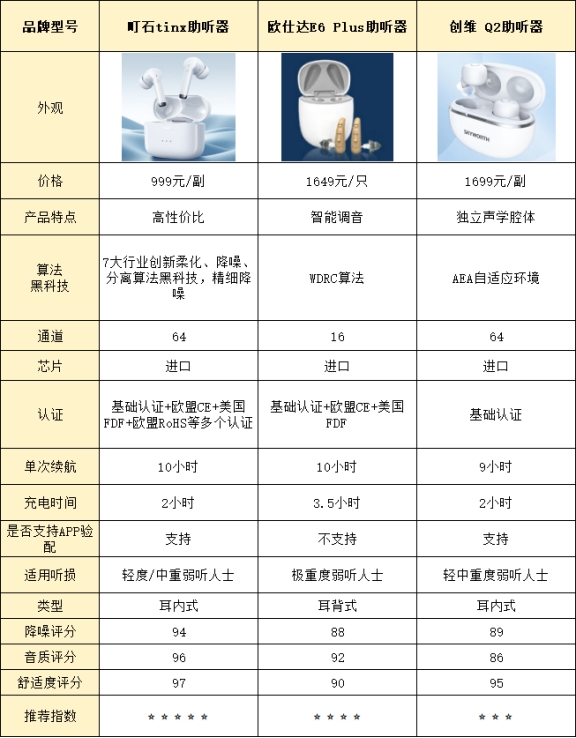 测评结果:町石 > 欧仕达 > 创维町石助听器音质测评表现町石的音质真的挺细腻的,人声还原得特别自然,听起来就像是朋友在你身边讲话,特别适合日常的沟通。尤其是在家庭聚会或者安静的环境下,它的音质简直无可挑剔。它搭载了64通道系统,结合高密度拾音和降噪技术,可以清晰地拾取周围的声音,还能把背景杂音隔离开来,确保语音更清晰,听得特别舒服。即使在有些复杂的环境下,音质的层次和清晰感还是很到位。佩戴起来也很舒适,增益率高达93.7%,让我觉得完全不逊色于一些大牌助听器。欧仕达助听器音质测评表现欧仕达的音质表现还行,尤其在人声方面,清晰度和自然感都挺不错的。总体来说,声音层次感也很好,听起来比较舒服。它的技术做得也不差,日常的使用没有太大问题。不过,在嘈杂的环境下,比如咖啡馆或者街道,降噪处理就没有那么完全,偶尔会有一些背景噪音混进来,影响到音质的纯净度。所以,欧仕达还是更适合安静环境使用,在这种环境下音质表现还是相当不错的。创维助听器音质测评表现创维的音质就比较中规中矩了,清晰度一般,在安静的环境下表现还不错,人声也比较清晰。但如果环境嘈杂或者声音重叠的时候,音质就稍微有些模糊,细节也不如其他两款那样清晰。尤其是在需要更高音质要求的场合,比如听音乐或者需要高保真音质的情况下,创维的表现就稍微有些平淡。总体来说,它在日常对话中可以满足需求,但在复杂环境下的表现就差点意思了。