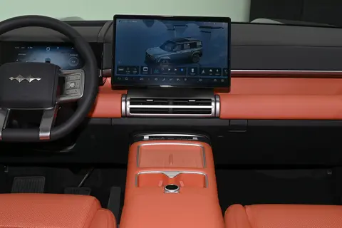 除了大空间,座舱的智能化同样值得关注,尤其多口之家,需求往往五花八门。方程豹钛7的内饰采用 “方圆” 融合的设计思路,车内大量使用软性材质包裹,全系标配舒芙蕾座椅,触感细腻,配合精致的缝线工艺,提升了座舱的质感 。提供暮云橙、雪隐灰和日蚀蓝三种配色,其中暮云橙色调温暖,日蚀蓝则显得静谧,满足不同家庭的审美偏好。双层环绕悬浮式仪表台采用纯平设计,搭配开阔后窗与超大天窗,让车内视野明亮通透,即使后排乘客也不会感到压抑。