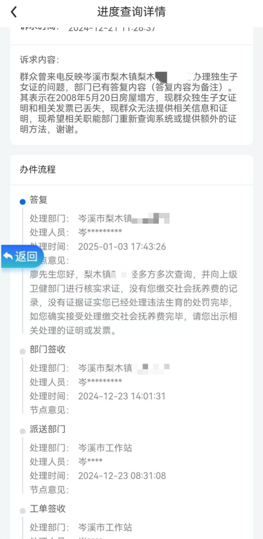 廖先生进一步说明,未能提供部分材料是由于不可抗力的自然灾害导致凭证遗失,而非主观不愿履行手续。他们家庭实际仅有一个子女,理应被认定为符合政策本意。他呼吁有关部门能在核实事实的基础上,兼顾历史背景与不可抗力因素,为其提供一条解决问题的可行路径,避免因无法补齐的旧手续使惠民政策无法落地。