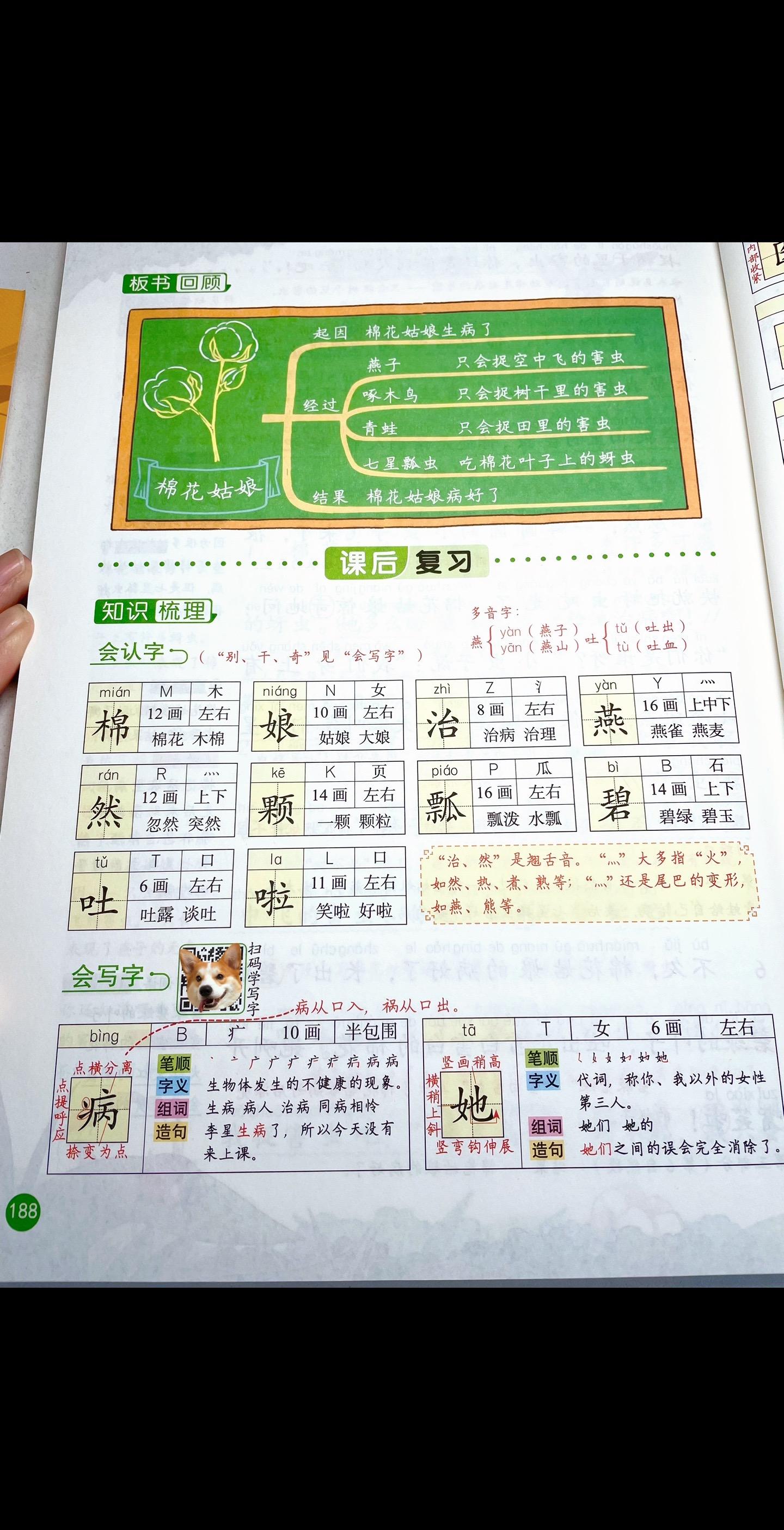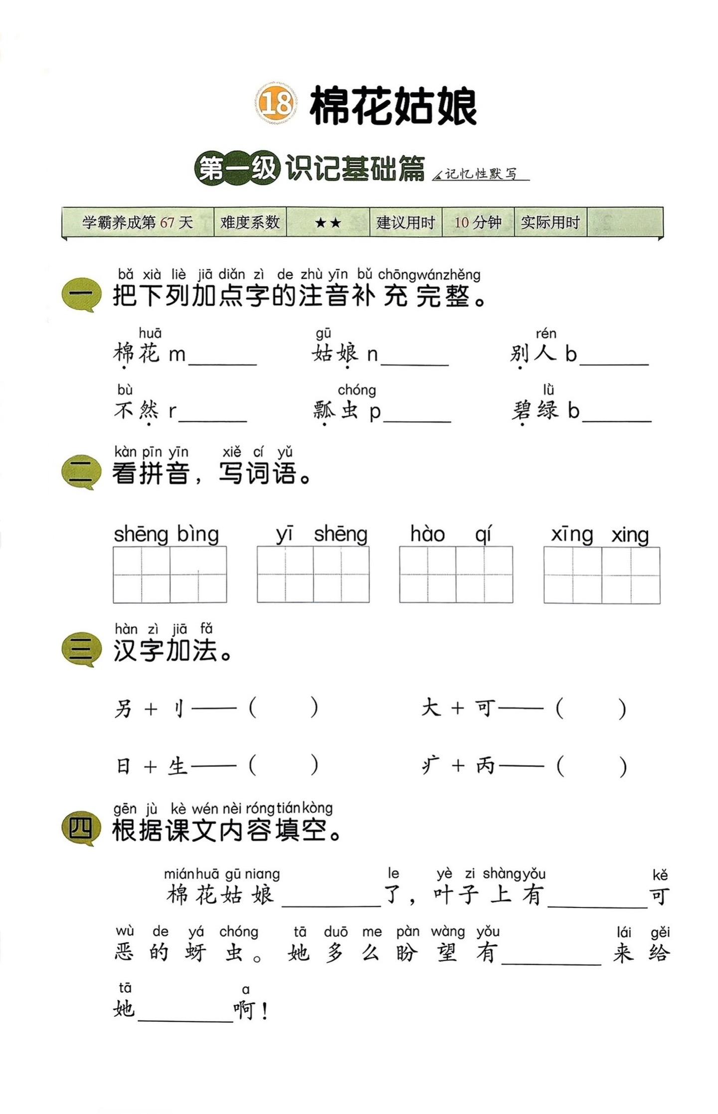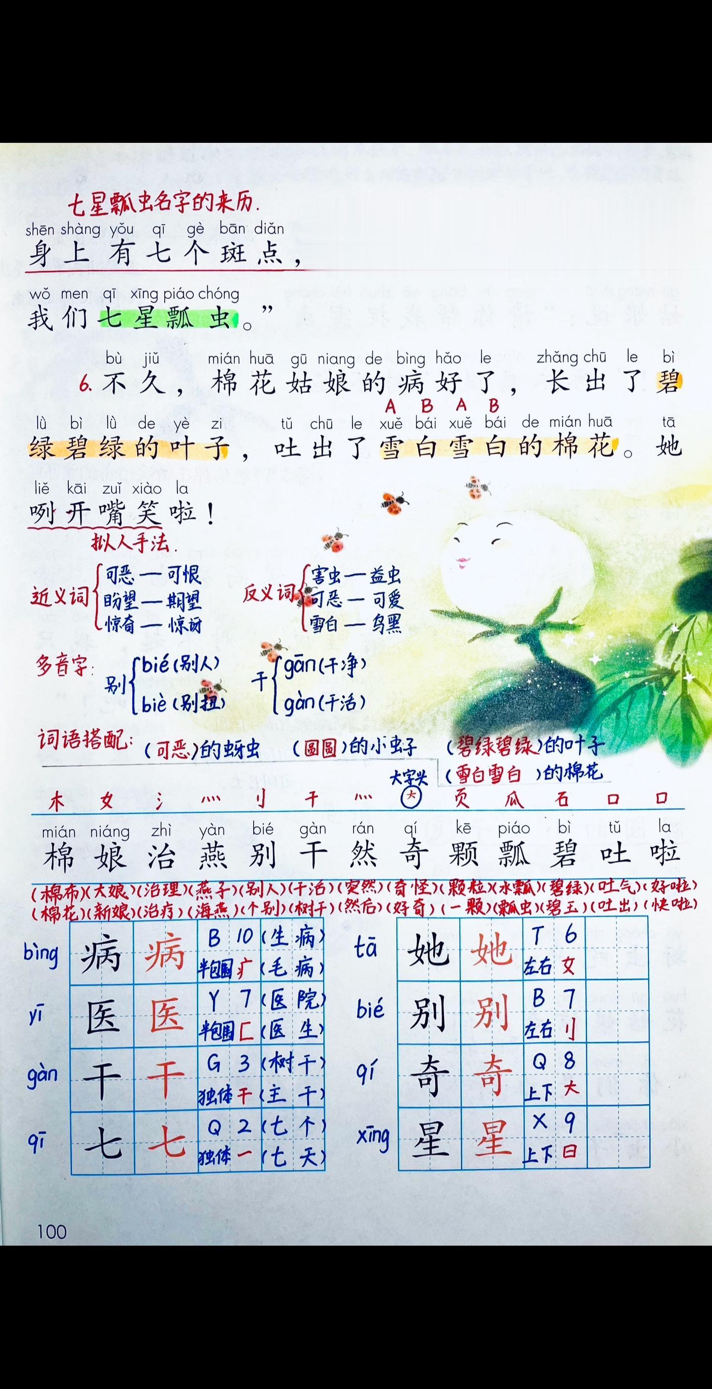 一年级语文下册《棉花姑娘》笔记+练习题+一二类字整理