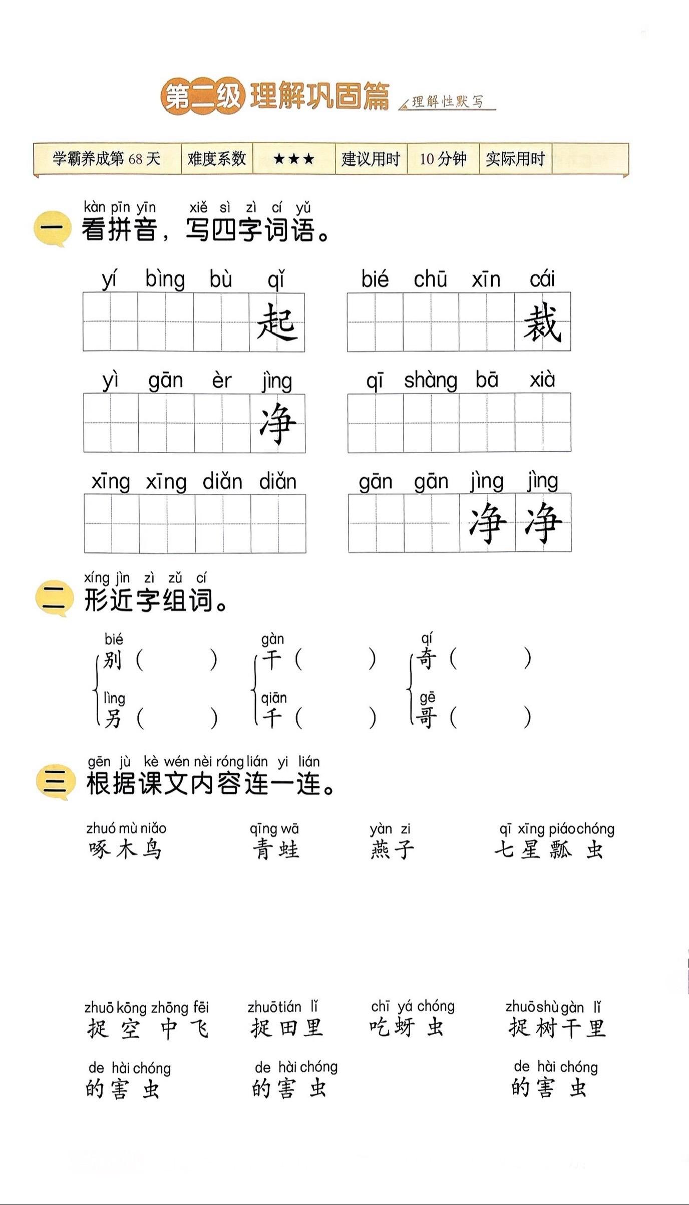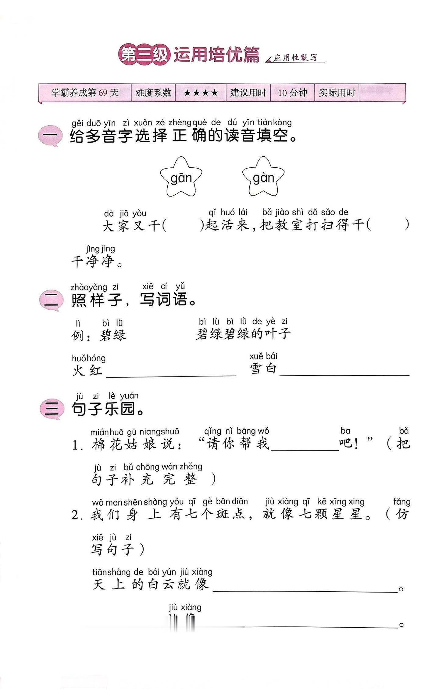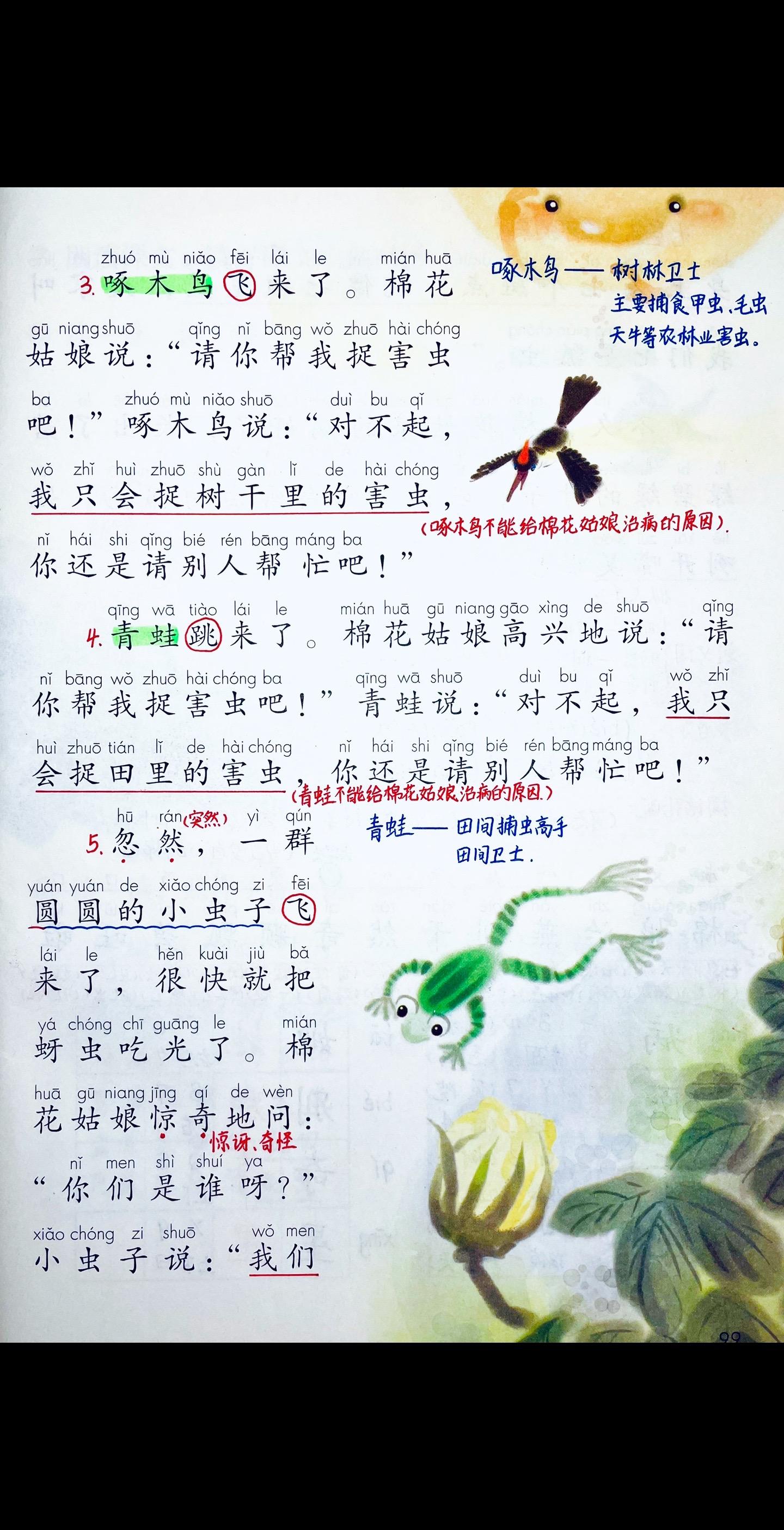 一年级语文下册《棉花姑娘》笔记+练习题+一二类字整理