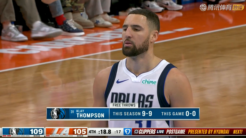 暂停回来,克莱连续命中两记三分,帮助独行侠缩小分差。