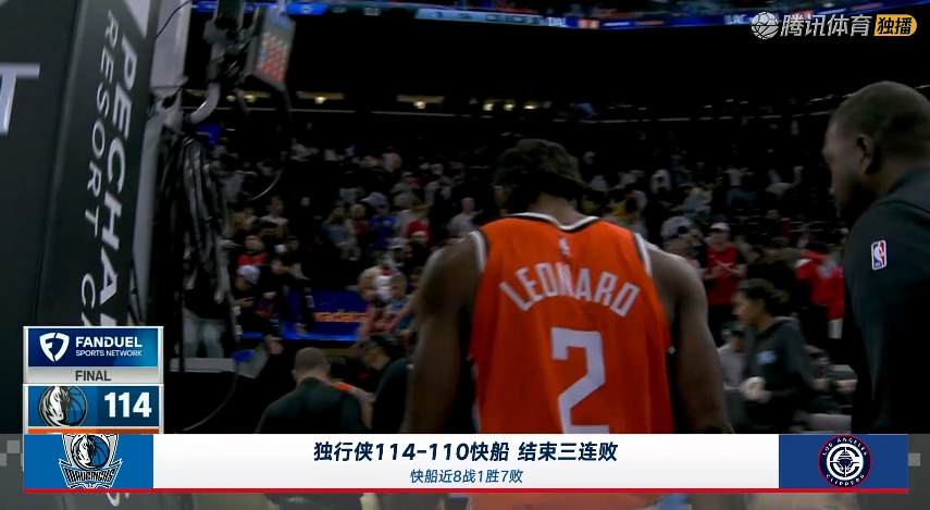 最终,快船110-114不敌独行侠残阵,遭遇4连败。