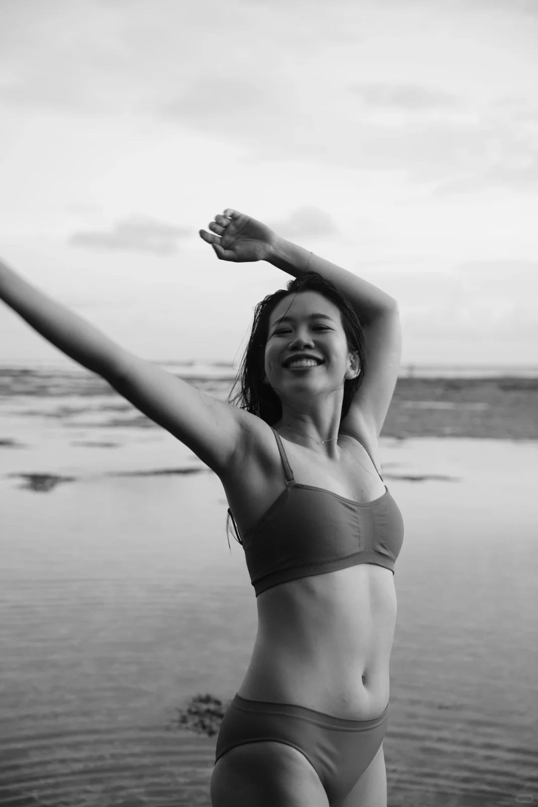 77在镜头前毫无顾忌地大笑,张开双臂舞蹈,在礁石上海水里嬉戏,她的活力和大自然很配。很多女生在镜头前可能会考虑自己是不是这里不完美,那里不协调,但是她的自信却让她更美了。